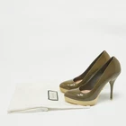 Curvaceous arches, a feminine appeal, and a well built structure define this set of designer pumps. Coming with comfortable insoles and sleek heels, style them with your favorite outfits.Certified by The Luxury Closet - This item has gone through a detailed authentication process overseen by our experts. We offer a lifetime guarantee of authenticity on all our items. Import duties, taxes and charges are not included in the item price. These charges are the buyers responsibility. Please check with your country’s customs office to determine what these additional cost will be prior to buying. Our eBay Store About Us Contact Us Add to Favorite Sellers Gucci Green Patent Leather Slip On Pumps Size 36 $125.4 Curvaceous arches, a feminine appeal, and a well built structure define this set of designer pumps. Coming with comfortable insoles and sleek heels, style them with your favorite outfits. Product Details Brand Color Green Dimensions Material Patent Leather Size 36 Outsole Width 8 cm Outsole Length 22 cm Heel Height 11 cm Includes Original Dustbag Certified by The Luxury Closet This item has gone through a detailed authentication process overseen by our experts. We offer a lifetime guarantee of authenticity on all our items. How We Check The in-house team of experts at The Luxury Closet is highly trained to verify the authenticity and the condition of the luxury products. They ensure that only 100% authentic items are put on sale.The evaluation process is unique with its own mix of assessment criteria and differs according to the category. Each item is evaluated based on the following combination of hallmarks, hardware, stitching, symmetry, material, craftsmanship, stamping, codes, hologram stickers, and packaging. Our authenticators also check if the items have been modified or amended (e.g., aftermarket diamonds, replaced batteries, repaired bags, etc.) International Buyers Import duties, taxes and charges are not included in the item price. These charges are the buyers responsibility. Please check with your country’s customs office to determine what these additional cost will be prior to buying.