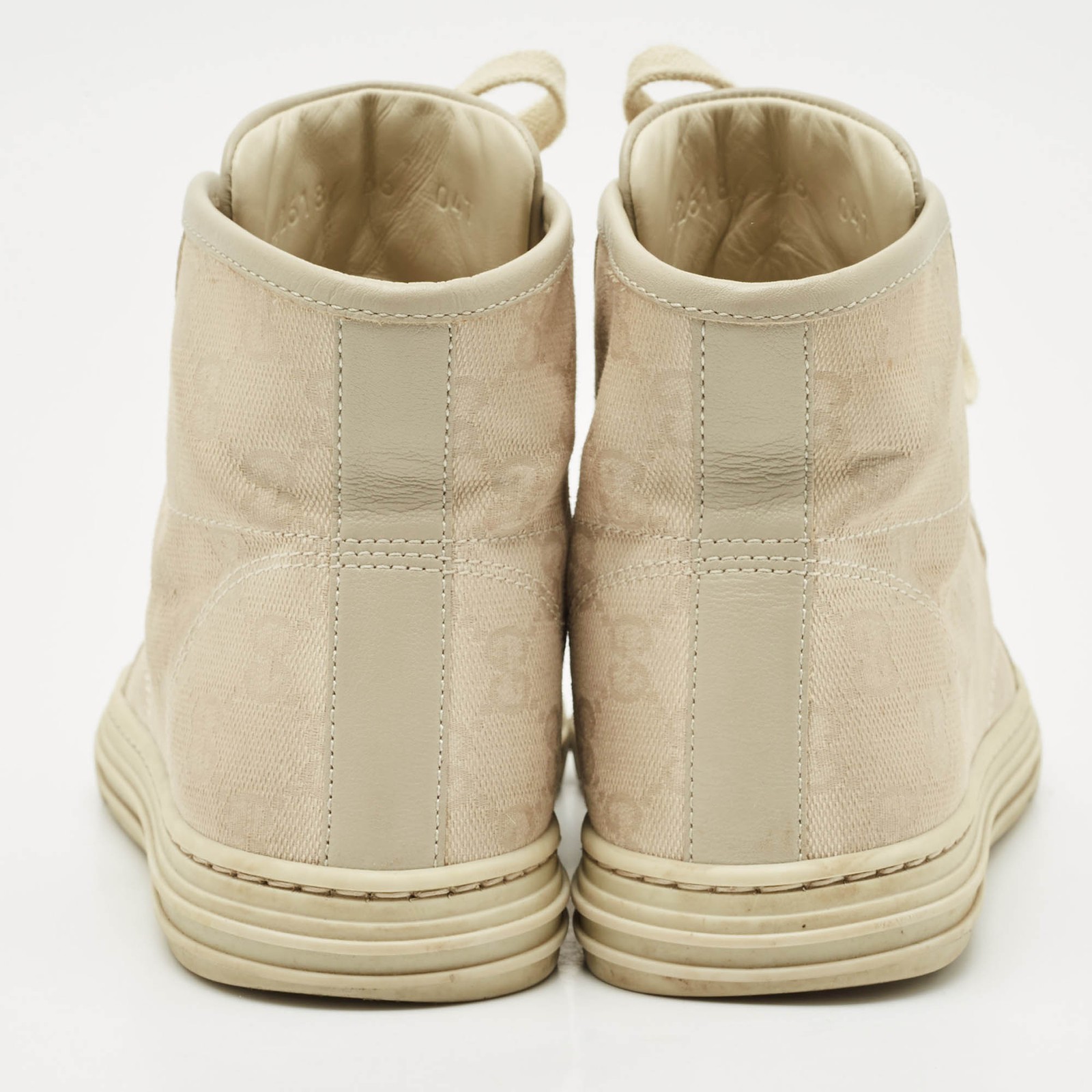 Combining streetwear appeal with iconic branding, these Gucci high top sneakers are crafted from grey GG canvas with tonal leather trims. Their structured silhouette and retro inspired vibe make them a versatile and stylish staple.Certified by The Luxury Closet - This item has gone through a detailed authentication process overseen by our experts. We offer a lifetime guarantee of authenticity on all our items. Import duties, taxes and charges are not included in the item price. These charges are the buyers responsibility. Please check with your country’s customs office to determine what these additional cost will be prior to buying. Our eBay Store About Us Contact Us Add to Favorite Sellers Gucci Grey GG Canvas and Leather High Top Sneakers Size 36 $489.5 Combining streetwear appeal with iconic branding, these Gucci high top sneakers are crafted from grey GG canvas with tonal leather trims. Their structured silhouette and retro inspired vibe make them a versatile and stylish staple. Product Details Brand Color Grey Dimensions Material Canvas, Leather Size 36 Outsole Width Outsole Length Heel Height Includes Certified by The Luxury Closet This item has gone through a detailed authentication process overseen by our experts. We offer a lifetime guarantee of authenticity on all our items. How We Check The in-house team of experts at The Luxury Closet is highly trained to verify the authenticity and the condition of the luxury products. They ensure that only 100% authentic items are put on sale.The evaluation process is unique with its own mix of assessment criteria and differs according to the category. Each item is evaluated based on the following combination of hallmarks, hardware, stitching, symmetry, material, craftsmanship, stamping, codes, hologram stickers, and packaging. Our authenticators also check if the items have been modified or amended (e.g., aftermarket diamonds, replaced batteries, repaired bags, etc.) International Buyers Import duties, taxes and charges are not included in the item price. These charges are the buyers responsibility. Please check with your country’s customs office to determine what these additional cost will be prior to buying.