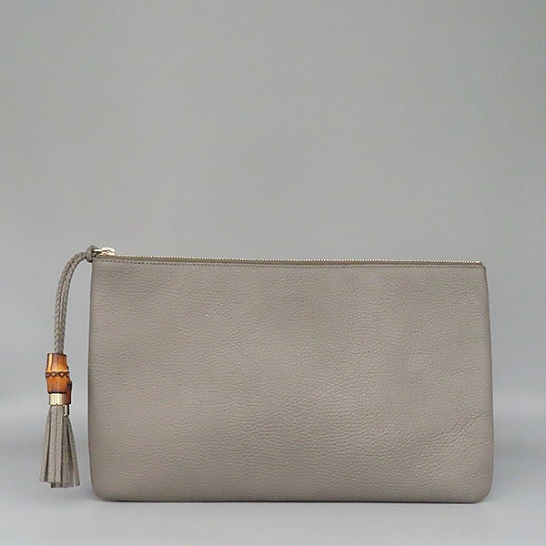 Size: 34 CM width/ 20 cm long Color: Gray Accessories: Dust Gucci (Gucci) 449653 Gray Leather Bamboo Embellished Clutch Bag [Cheonan Shinsegae Store]. The material is leather. There is a pocket on the inside. **Due to the nature of second-hand luxury goods, there may be stains not visible in the image. **