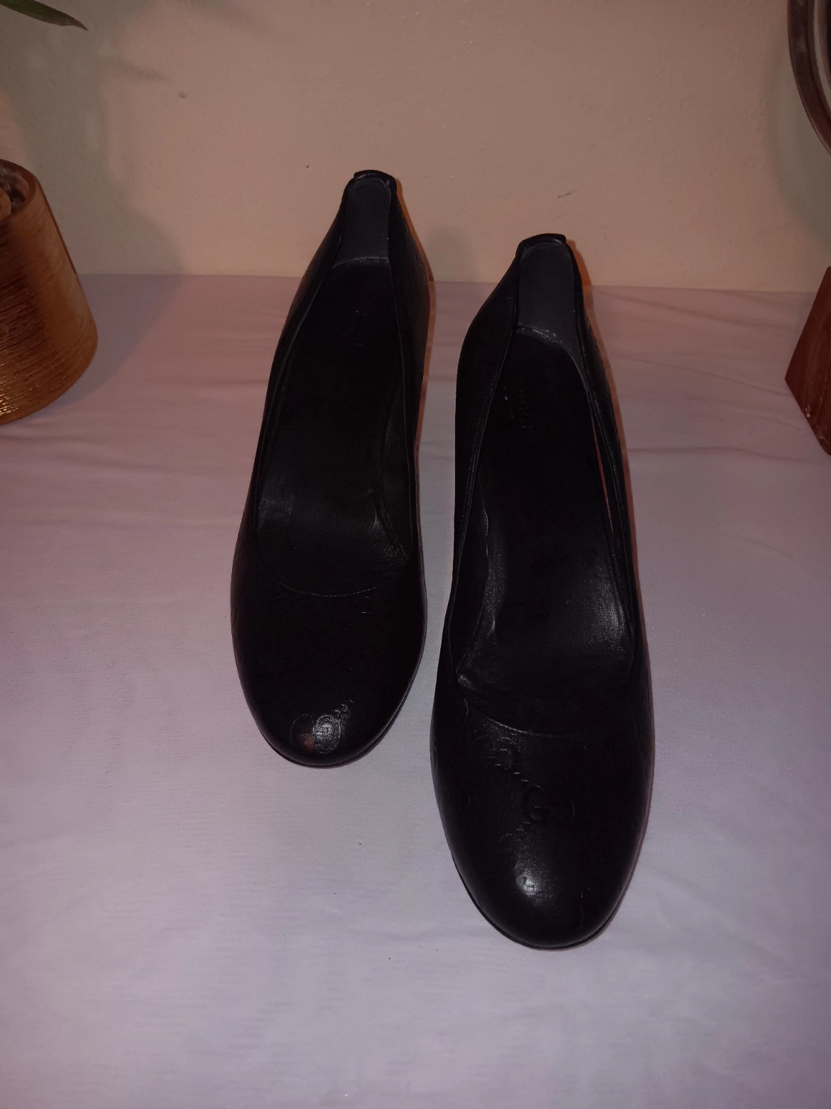$ 24.23Vintage Gucci Beige Suede Black Leather Kitten Heel Pumps with Lion Head Sz 9