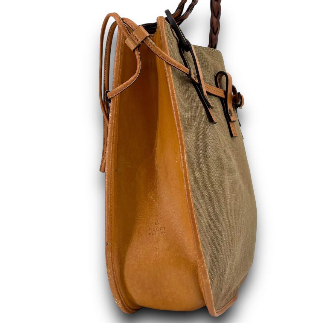 Gucci Canvas Handbag Khaki Used Fashion Bag with Guarantee Key Features Gucci Canvas Handbag in Khaki - Model: 110295 3444 - C:Exterior Material: Canvas and Leather - C:Exterior Color: Khaki - C:Style: Tote - C:Theme: Luxury Fashion - C:Character: Elegant, Classic - C:Accents: Bamboo Handles - C:Features: Interior pocket - C:Finish: Matte - C:Closure: Open top - C:Accessories: None included - C:Country/Region of Manufacture: Japan - C:Vintage: No - C:Bag Width: 11.8 in - C:Bag Height: 10.6 in - C:Bag Depth: 3.5 in - C:Handle/Strap Color: Khaki - C:Handle/Strap Material: Leather - C:Handle Drop: 7.1 in - C:Hardware Color: Gold - Specifications Brand Gucci Country Japan Product Description Item Title Gucci Canvas Handbag Khaki Payment Supports managed payments Please pay within 5 days after auction is finished. About Us We are located in Japan. It's our pleasure to make you happy by proposing our recommend item. If you have any questions or request about items, please feel free to ask us. International Buyers - Please Note: -Import duties, taxes, and charges are not included in the item price or shipping charges. These charges are the buyer's responsibility. -Please check with your country's customs office to determine what these additional costs will be prior to bidding/buying. -These charges are normally collected by the delivering freight (shipping) company or when you pick the item up - do not confuse them for additional shipping charges. -We do not mark merchandise values below value or mark items as - gifts - The US and International government regulations prohibit such behavior. Thank you for your understanding.