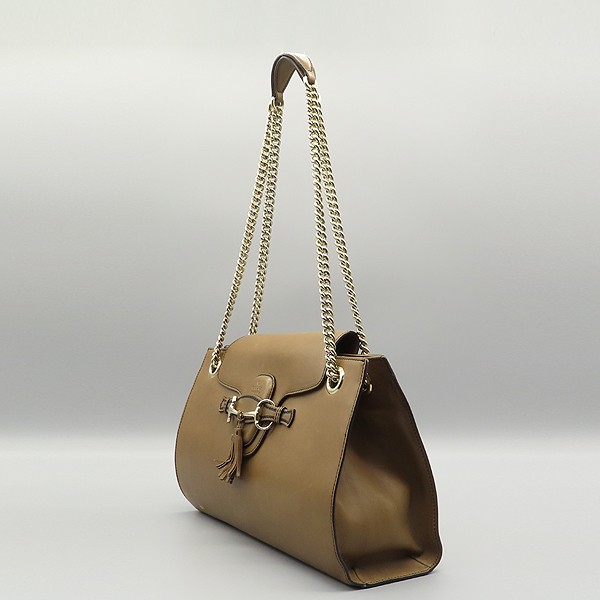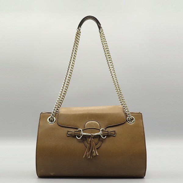 Size: 36 cm width/ 23 cm/ width 11 cm/ handle height 28 cm/ handle height : brown accessories: booklet/ leather tech Gucci (Gucci) 295403 brown leather Emily (Emily) gold L size chain shoulder bag [Suwon Gwanggyo store]. The material is leather. There is a zipper pocket on the inside. Store price: 2; 750; 000 won.