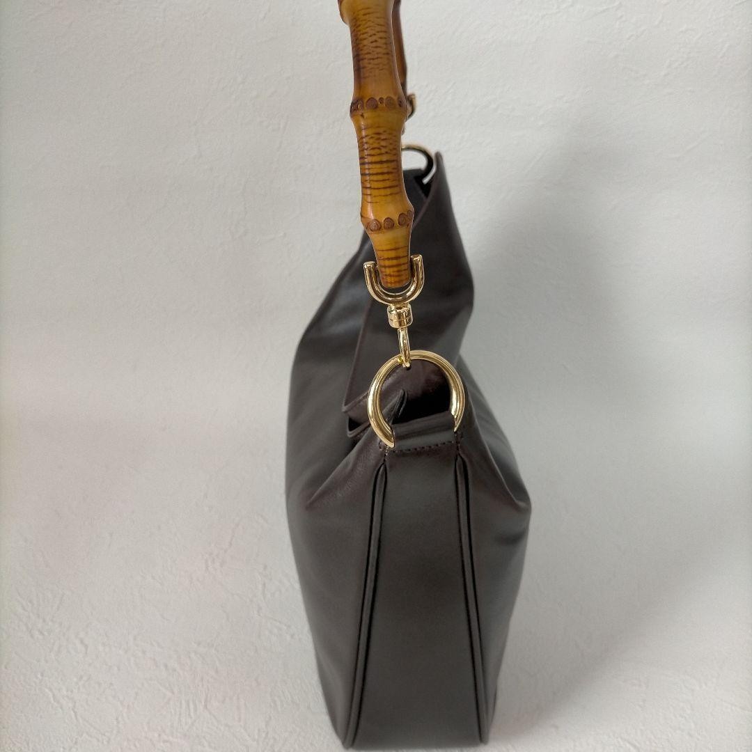 Description Gucci Bamboo Handbag 2-Way Shoulder Bag, Brown Leather ⬛︎Color: Brown ⬛︎Size (Approx.) Width: 29cm (Base) Height: 25cm Depth: 10cm (Bottom) Please note that these measurements are taken by an amateur. Condition Surface scratches Scratches and peeling on the lining There is some scuffing on the metal fittings and some wear to the leather (at the bag opening), but it is still in usable condition. The shoulder strap has a tendency to curl. It should straighten with use. *Please check the photos again* Please be aware that this is a pre-owned item before purchasing. Shipping Standard Shipping (1~2 weeks): Small Packages Expedited Shipping (~7 days): EMS, FedEx, or DHL Arrival may be delayed due to global conditions. Please understand. International Buyers - Please Note: Import duties, taxes, and charges are not included in the item price or shipping cost. These charges are the buyer's responsibility. Please check with your country's customs office to determine what these additional costs will be prior to bidding or buying. Thank you for your understanding.