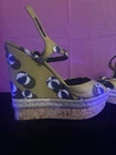 $ 27.46Aldo Black Gold Strappy Wedge Sandals Cork Leather Size 8.5