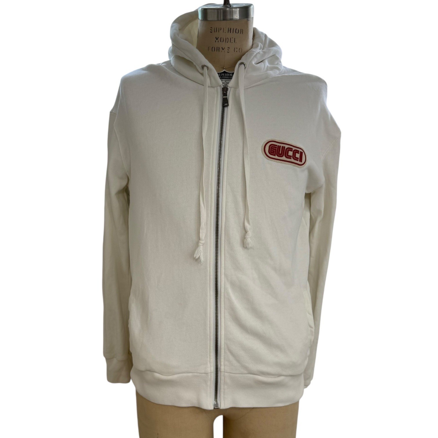 Gucci Magic Sergio Mora Privilegium Perpetuum Hoodie Sweatshirt M Embroidered Condition: Pre-Owned Authentic Light Markings at Front Side (see photos) Some Markings on Sleeve (see photos) Some Pilling around Gucci Logo at Chest No Holes Measurements Taken While Garment Was Laying Flat: These measurements were personally taken and are approximate: Underarm to Underarm Seam inches- 23 Length from shoulder seam to hem inches- 28 Length across Bottom inches- 19.5 Measurements are provided to help determine fit, it possible please compare to something you already own All photos are of the actual item you will receive (stock photos aren't used) Your purchase will ship promptly. *y19 Statement Gucci sweatshirt for men, blending luxury with bold artistic expression. This white zip-up hoodie is adorned with the "Magic Gucci" motif, featuring an embroidered image and lettering that adds a unique touch. The hoodie includes practical front pockets and a comfortable, relaxed fit. The 'Made in Italy' tag adds an extra touch of quality assurance. An ideal addition to elevate your everyday style, whether you're meeting friends for a casual brunch or attending a relaxed evening event. Keywords: Gucci, hoodie, sweatshirt, zip up, embroidered, Magic Gucci, Privilegium Perpetuum, menswear, designer, luxury, streetwear, Italian, casual, vintage style