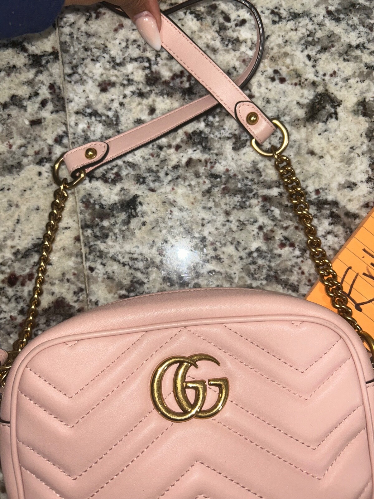 MADE IN ITALY 🇮🇹 ✔️GREAT CONDITION ✔️No inclusions ✔️All hardware is GOLD ✔️Has some small stains in the interior- hence the lower price ✔️No foul smell- smoke free home ✔️No tear ✔️Has strap that is chain AND leather ✔️GG emblem is still shiny ✔️No peeling/No stickiness ✔️Has one area where there is a rub(please see pictures) ✔️No loose stitching ✔️No fading ✔️PINK bag I’m an experienced seller who has sold on other platforms- I’m expanding- please message with any questions or concerns