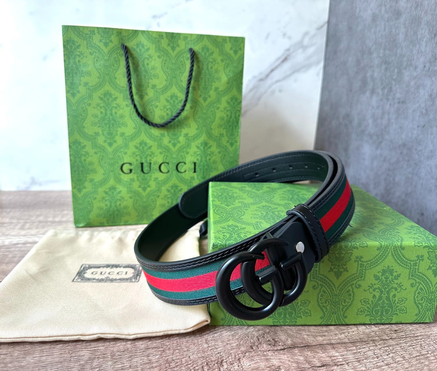 $ 41.72Gucci Interlock GG Leather Belt in Green Red White size 95 cm fits 32-34 waist