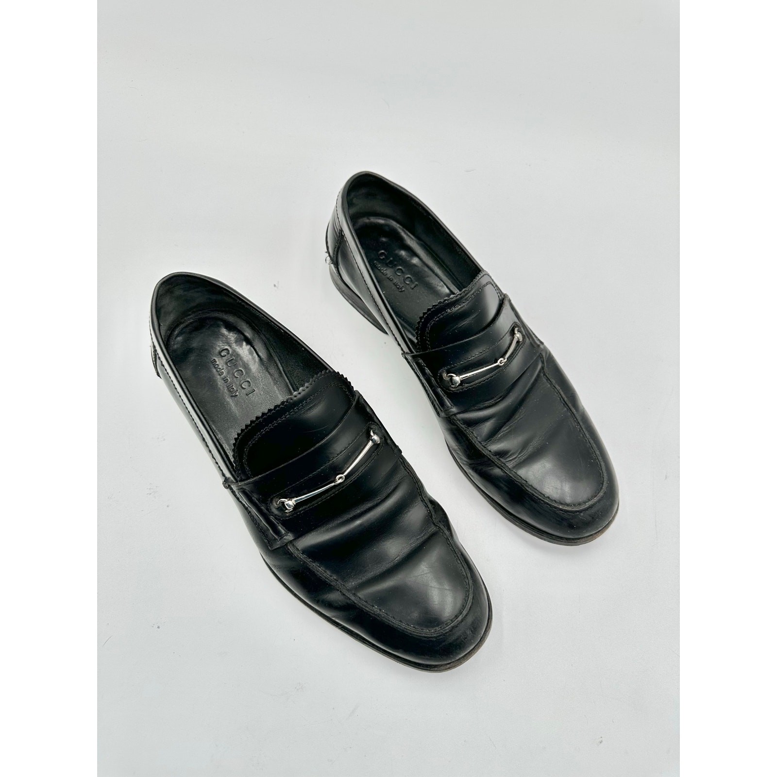Gucci Men's Black Leather Slip On Horsebit Loafers Size 10 - smooth black leather - slip on - silver tone hardware - men's 10 - good used condition. some bottom wear as shown in photos keywords: luxury designer loafers slipon horsebit leather