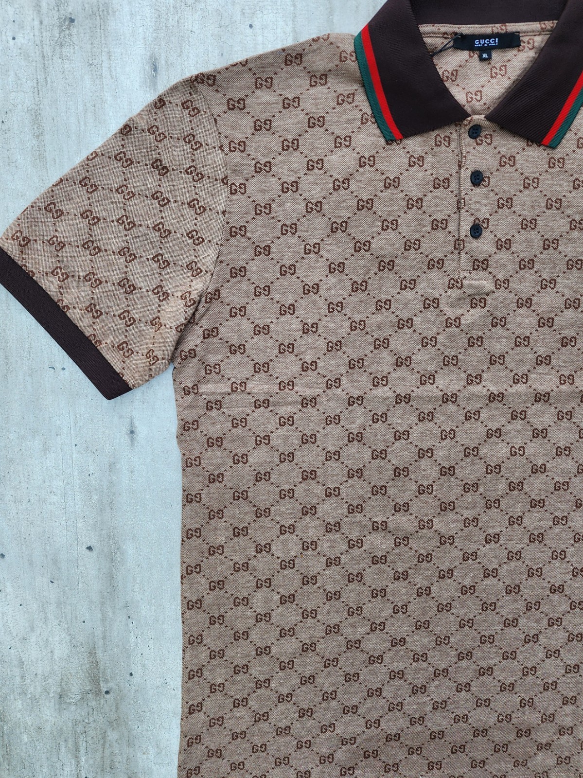 Polo Shirt Men's Gucci Regular Fit Excellent condition not have defect cotton button closure spread gg Classic polo Color Brown Tags inside outside Size XL Chest 59 Cm Length 80 Cm