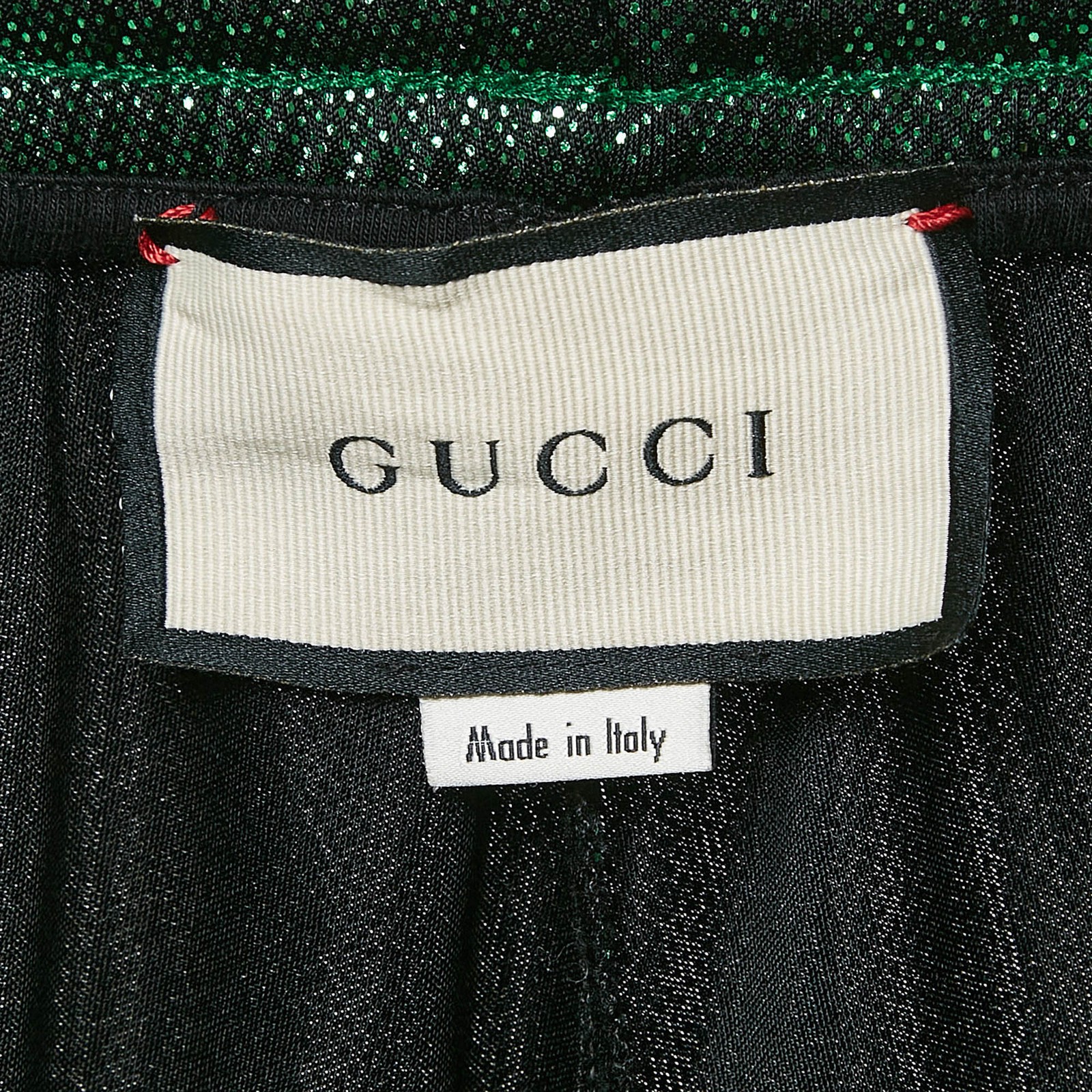 Gucci brings an eye catching twist to athleisure with these metallic green jersey track pants. Featuring contrast logo stripes along the sides, they offer a disco inspired take on classic sportswear.Certified by The Luxury Closet - This item has gone through a detailed authentication process overseen by our experts. We offer a lifetime guarantee of authenticity on all our items. Import duties, taxes and charges are not included in the item price. These charges are the buyers responsibility. Please check with your country’s customs office to determine what these additional cost will be prior to buying. Our eBay Store About Us Contact Us Add to Favorite Sellers Gucci Metallic Green Logo Striped Jersey Trackpants M $382.8 Gucci brings an eye catching twist to athleisure with these metallic green jersey track pants. Featuring contrast logo stripes along the sides, they offer a disco inspired take on classic sportswear. Product Details Brand Color Green Dimensions Material Jersey Size M Outsole Width Outsole Length Heel Height Includes The Luxury Closet Packaging Certified by The Luxury Closet This item has gone through a detailed authentication process overseen by our experts. We offer a lifetime guarantee of authenticity on all our items. How We Check The in-house team of experts at The Luxury Closet is highly trained to verify the authenticity and the condition of the luxury products. They ensure that only 100% authentic items are put on sale.The evaluation process is unique with its own mix of assessment criteria and differs according to the category. Each item is evaluated based on the following combination of hallmarks, hardware, stitching, symmetry, material, craftsmanship, stamping, codes, hologram stickers, and packaging. Our authenticators also check if the items have been modified or amended (e.g., aftermarket diamonds, replaced batteries, repaired bags, etc.) International Buyers Import duties, taxes and charges are not included in the item price. These charges are the buyers responsibility. Please check with your country’s customs office to determine what these additional cost will be prior to buying.