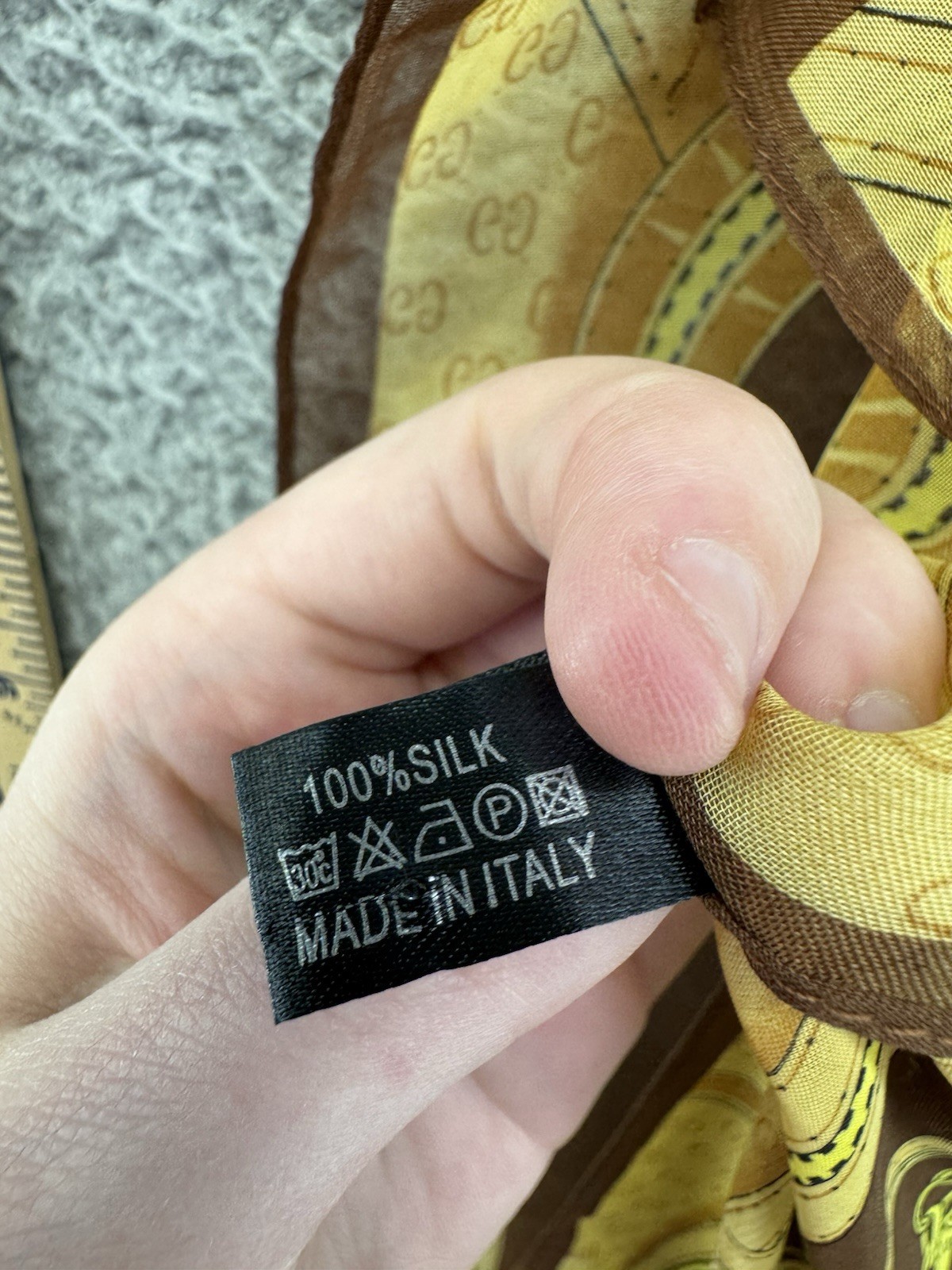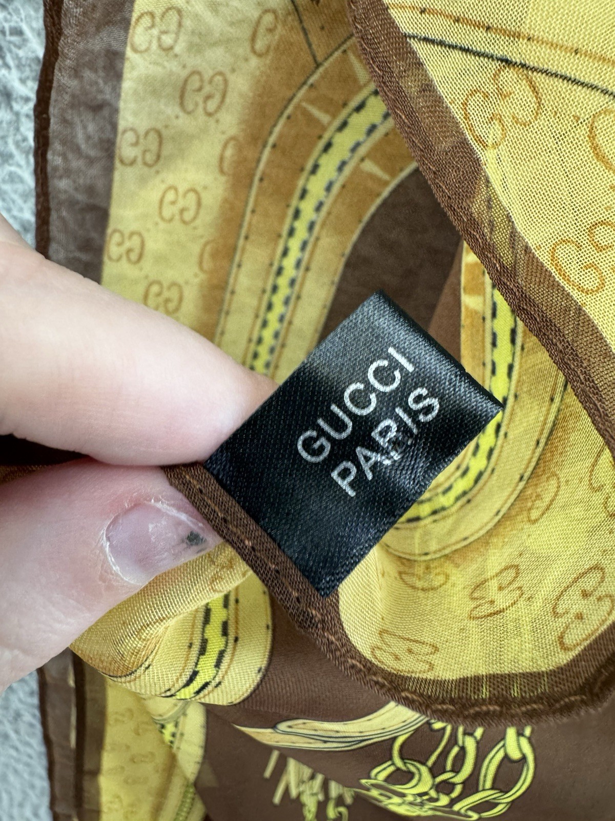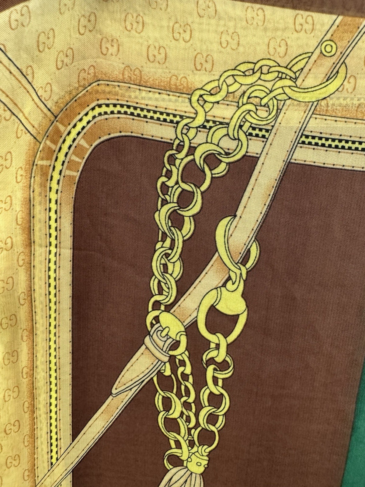 The Gucci Multicolored Rectangle Scarf is a luxurious accessory made in Paris from silk satin. Featuring an argyle/diamond pattern with the signature Gucci logo accents, this scarf is perfect for adding a touch of art, flower, and logo themes to your outfit. With a vibrant multicolor design and a rectangle style, this scarf is a versatile piece that can be worn in various ways to elevate your springtime ensembles. Perfect for women who appreciate high-quality craftsmanship and timeless elegance from a renowned brand like Gucci.