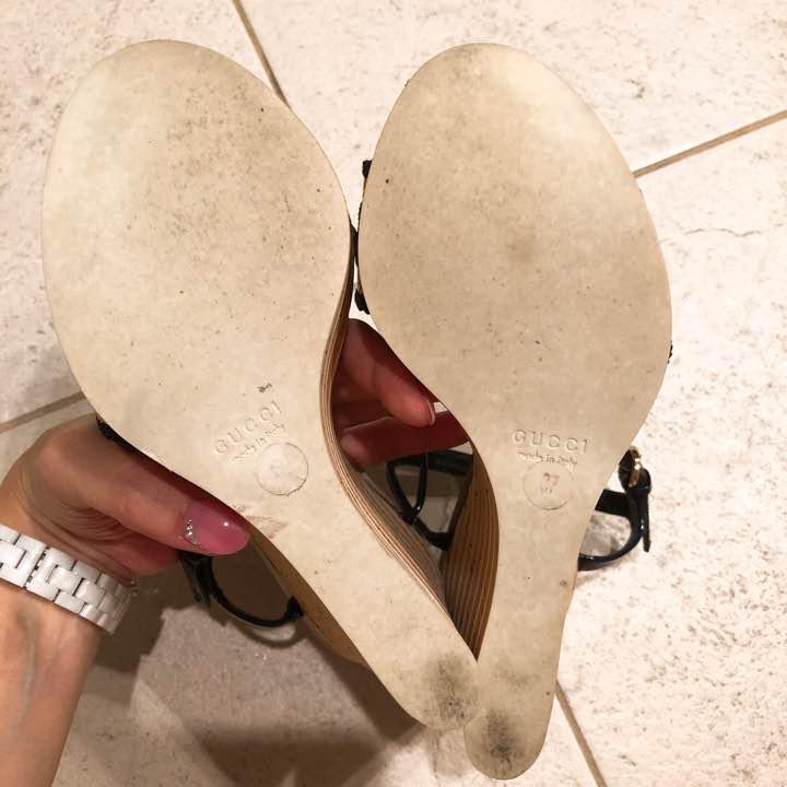Gucci Women Marine Navy Wedge Sandals 24cm 14cm Heel Mint Condition Key Features Elevate your style with these elegant GUCCI navy wedge-sole sandals, perfect for the upcoming season. Size 37 (approx. 24cm), featuring a 14cm heel and marine-inspired design. Gently worn once, with minor scuffing on the toe area, but overall in excellent condition. Made in Italy, these sandals are ideal for casual or special occasions. They are stored at home and sold as-is, with no additional discounts for single purchases. Perfect for those seeking a stylish, vintage-inspired look. Item Specifics: - Brand: GUCCI - Product Type: Wedge Sandals - Model: Marine Style - Color: Navy - Size (EU): 37 - UK Shoe Size: 4.5 - C:US Shoe Size: 7 - JP Shoe Size: 24cm - Shoe Width: Medium - Heel Height: Approximately 14cm - Upper Material: Leather - Outsole Material: Specifications Brand Gucci Country Japan Department Women Product Description Item Title Gucci Marine Sandals Wedge Sole Payment Supports managed payments Please pay within 5 days after auction is finished. About Us We are located in Japan. It's our pleasure to make you happy by proposing our recommend item. If you have any questions or request about items, please feel free to ask us. International Buyers - Please Note: -Import duties, taxes, and charges are not included in the item price or shipping charges. These charges are the buyer's responsibility. -Please check with your country's customs office to determine what these additional costs will be prior to bidding/buying. -These charges are normally collected by the delivering freight (shipping) company or when you pick the item up - do not confuse them for additional shipping charges. -We do not mark merchandise values below value or mark items as - gifts - The US and International government regulations prohibit such behavior. Thank you for your understanding.