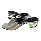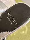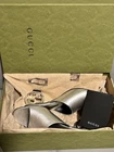 These Gucci mule sandals are absolutely stunning! The metallic silver leather is luxurious and goes with everything, making them super versatile. They slip on easily, and the iconic logo heel adds just the right touch of elegance. Brand new with the box and dust covers—such a steal compared to retail! Perfect fit if you're a 7.5/8. Love them!