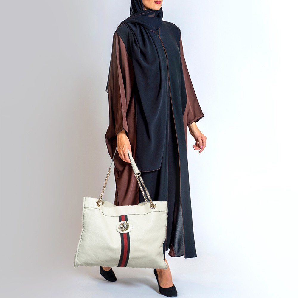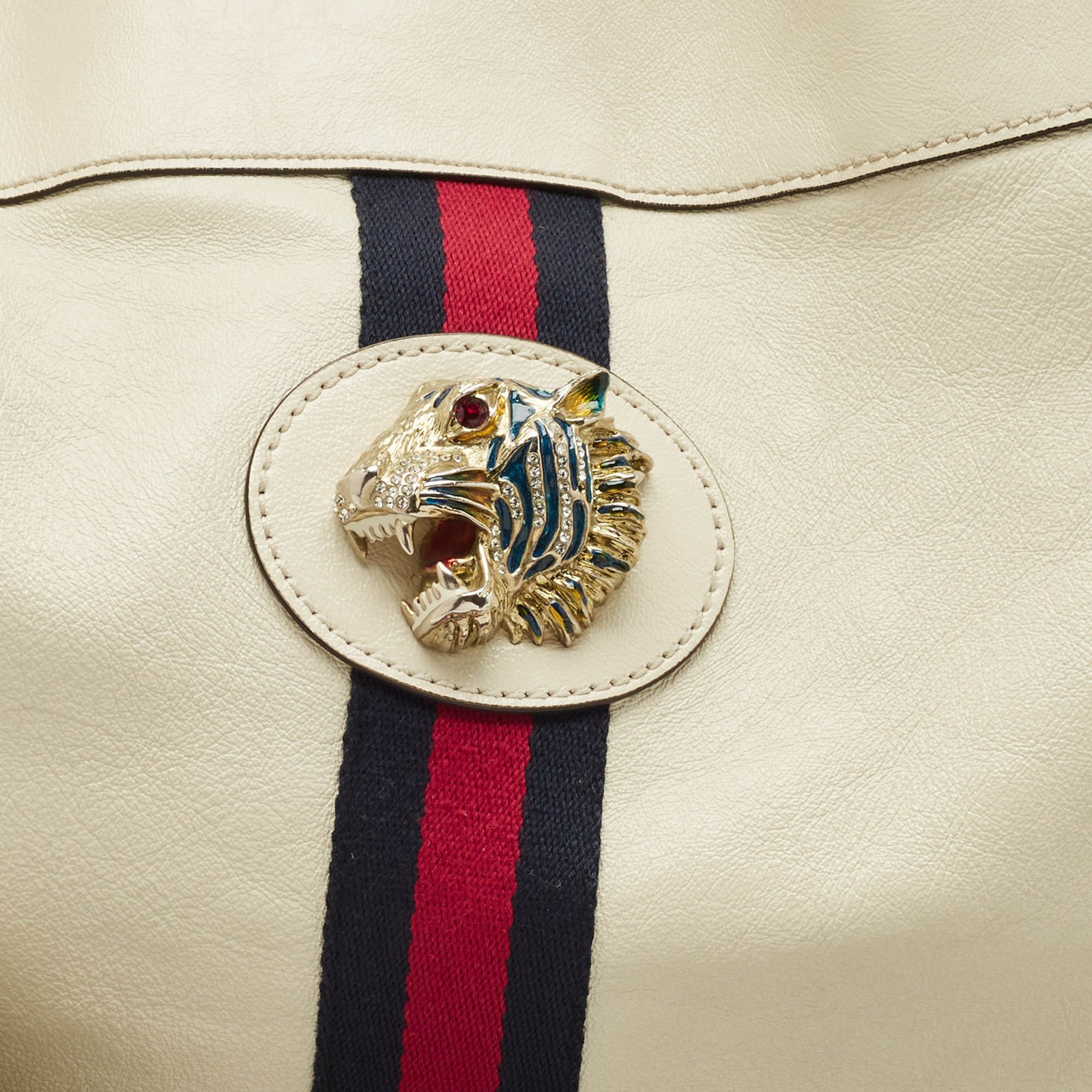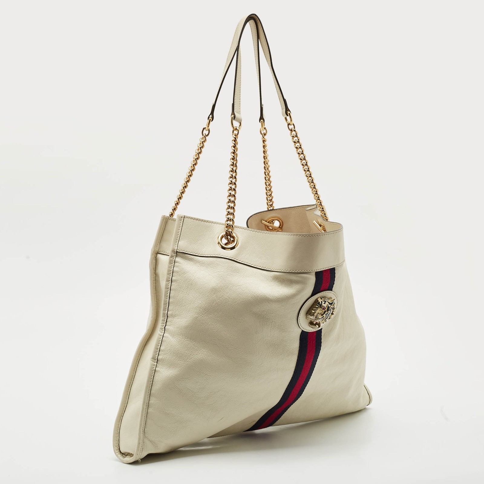 This alluring tote bag for women has been designed to assist you on any day. Convenient to carry and fashionably designed, the tote is cut with skill and sewn into a great shape. It is well equipped to be a reliable accessory.Certified by The Luxury Closet - This item has gone through a detailed authentication process overseen by our experts. We offer a lifetime guarantee of authenticity on all our items. Import duties, taxes and charges are not included in the item price. These charges are the buyers responsibility. Please check with your country’s customs office to determine what these additional cost will be prior to buying. Our eBay Store About Us Contact Us Add to Favorite Sellers Gucci Off White Leather Large Web Rajah Tote $768.9 This alluring tote bag for women has been designed to assist you on any day. Convenient to carry and fashionably designed, the tote is cut with skill and sewn into a great shape. It is well equipped to be a reliable accessory. Product Details Brand Color White Dimensions Material Fabric, Leather Size Large Outsole Width Outsole Length Heel Height Includes Certified by The Luxury Closet This item has gone through a detailed authentication process overseen by our experts. We offer a lifetime guarantee of authenticity on all our items. How We Check The in-house team of experts at The Luxury Closet is highly trained to verify the authenticity and the condition of the luxury products. They ensure that only 100% authentic items are put on sale.The evaluation process is unique with its own mix of assessment criteria and differs according to the category. Each item is evaluated based on the following combination of hallmarks, hardware, stitching, symmetry, material, craftsmanship, stamping, codes, hologram stickers, and packaging. Our authenticators also check if the items have been modified or amended (e.g., aftermarket diamonds, replaced batteries, repaired bags, etc.) International Buyers Import duties, taxes and charges are not included in the item price. These charges are the buyers responsibility. Please check with your country’s customs office to determine what these additional cost will be prior to buying.