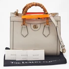 This alluring tote bag for women has been designed to assist you on any day. Convenient to carry and fashionably designed, the tote is cut with skill and sewn into a great shape. It is well equipped to be a reliable accessory.Certified by The Luxury Closet - This item has gone through a detailed authentication process overseen by our experts. We offer a lifetime guarantee of authenticity on all our items. Import duties, taxes and charges are not included in the item price. These charges are the buyers responsibility. Please check with your country’s customs office to determine what these additional cost will be prior to buying. Our eBay Store About Us Contact Us Add to Favorite Sellers Gucci Off White Leather Small Bamboo Diana Tote $1386 This alluring tote bag for women has been designed to assist you on any day. Convenient to carry and fashionably designed, the tote is cut with skill and sewn into a great shape. It is well equipped to be a reliable accessory. Product Details Brand Color White Dimensions Material Bamboo, Leather Size Small Outsole Width Outsole Length Heel Height Includes Certified by The Luxury Closet This item has gone through a detailed authentication process overseen by our experts. We offer a lifetime guarantee of authenticity on all our items. How We Check The in-house team of experts at The Luxury Closet is highly trained to verify the authenticity and the condition of the luxury products. They ensure that only 100% authentic items are put on sale.The evaluation process is unique with its own mix of assessment criteria and differs according to the category. Each item is evaluated based on the following combination of hallmarks, hardware, stitching, symmetry, material, craftsmanship, stamping, codes, hologram stickers, and packaging. Our authenticators also check if the items have been modified or amended (e.g., aftermarket diamonds, replaced batteries, repaired bags, etc.) International Buyers Import duties, taxes and charges are not included in the item price. These charges are the buyers responsibility. Please check with your country’s customs office to determine what these additional cost will be prior to buying.