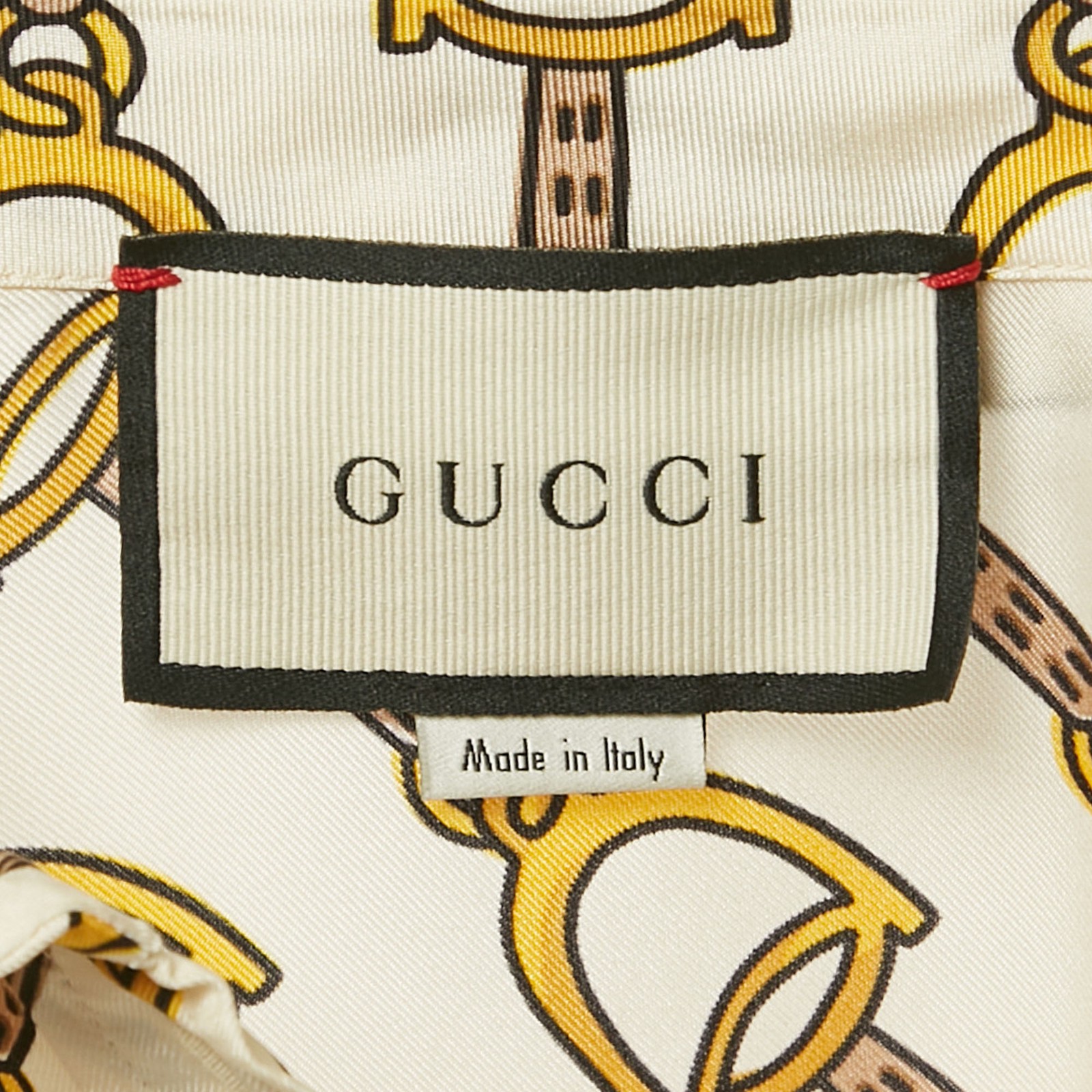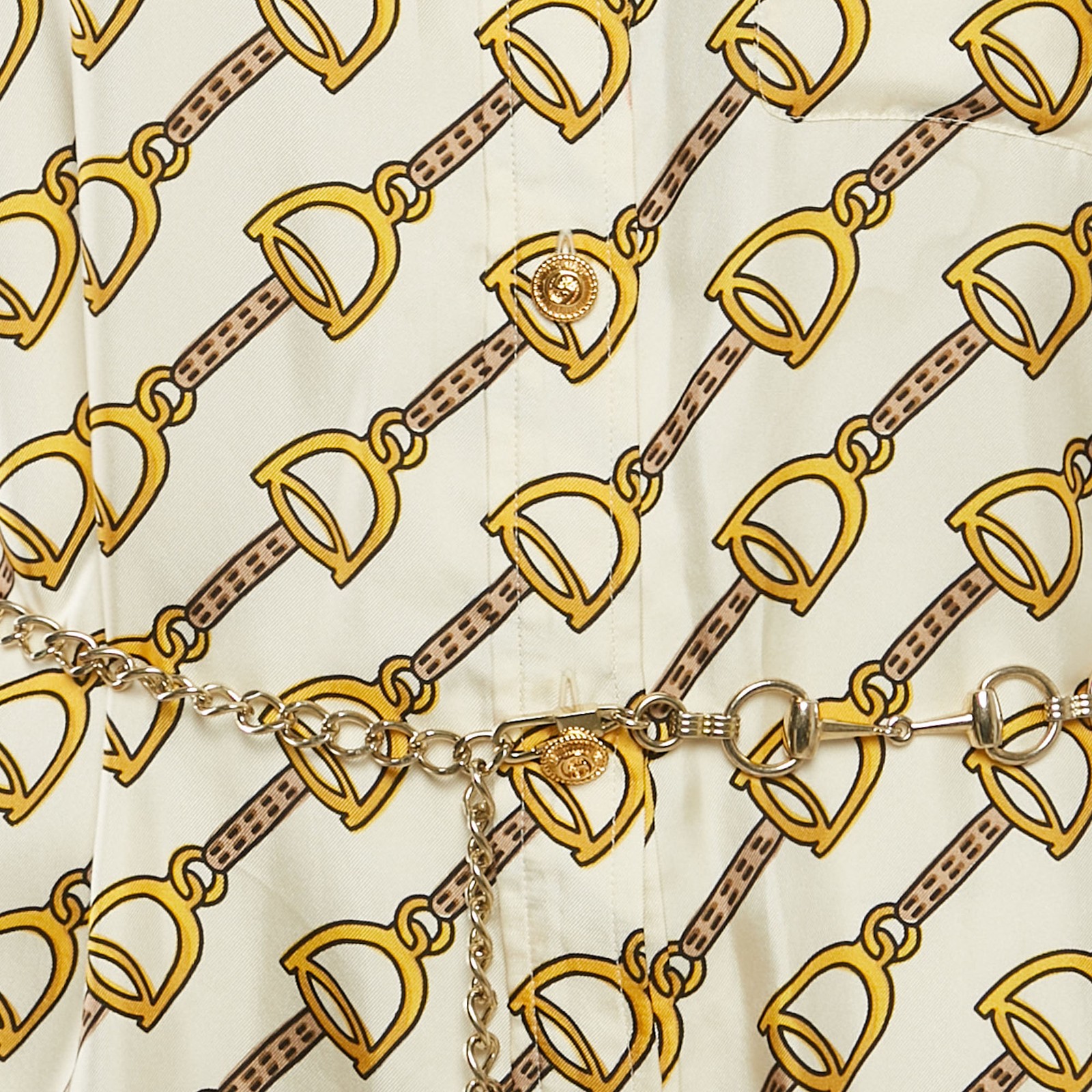 Refined heritage takes form in this off white silk dress by Gucci, adorned with an equestrian inspired horse bit print. Finished with a belt and button front detail, its an elevated take on classic fashion codes.Certified by The Luxury Closet - This item has gone through a detailed authentication process overseen by our experts. We offer a lifetime guarantee of authenticity on all our items. Import duties, taxes and charges are not included in the item price. These charges are the buyers responsibility. Please check with your country’s customs office to determine what these additional cost will be prior to buying. Our eBay Store About Us Contact Us Add to Favorite Sellers Gucci Off-White Horse-bit Print Silk Button Front Belted Short Dress L $1134.1 Refined heritage takes form in this off white silk dress by Gucci, adorned with an equestrian inspired horse bit print. Finished with a belt and button front detail, its an elevated take on classic fashion codes. Product Details Brand Color White Dimensions Material Silk Size L Outsole Width Outsole Length Heel Height Includes Certified by The Luxury Closet This item has gone through a detailed authentication process overseen by our experts. We offer a lifetime guarantee of authenticity on all our items. How We Check The in-house team of experts at The Luxury Closet is highly trained to verify the authenticity and the condition of the luxury products. They ensure that only 100% authentic items are put on sale.The evaluation process is unique with its own mix of assessment criteria and differs according to the category. Each item is evaluated based on the following combination of hallmarks, hardware, stitching, symmetry, material, craftsmanship, stamping, codes, hologram stickers, and packaging. Our authenticators also check if the items have been modified or amended (e.g., aftermarket diamonds, replaced batteries, repaired bags, etc.) International Buyers Import duties, taxes and charges are not included in the item price. These charges are the buyers responsibility. Please check with your country’s customs office to determine what these additional cost will be prior to buying.