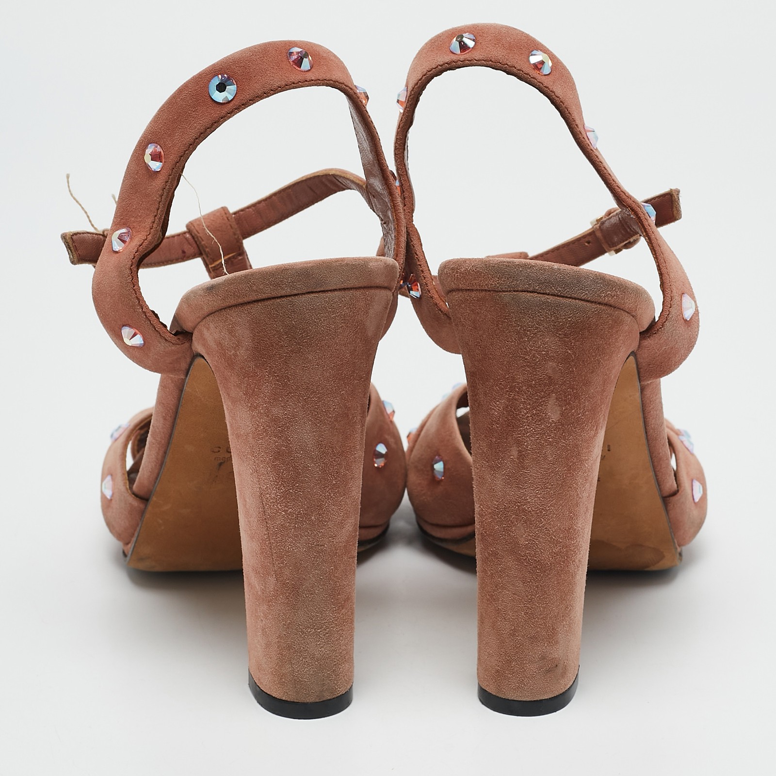 These sandals will frame your feet in an elegant manner. Crafted from quality materials, they flaunt a classy display, comfortable insoles and durable heels.Certified by The Luxury Closet - This item has gone through a detailed authentication process overseen by our experts. We offer a lifetime guarantee of authenticity on all our items. Import duties, taxes and charges are not included in the item price. These charges are the buyers responsibility. Please check with your country’s customs office to determine what these additional cost will be prior to buying. Our eBay Store About Us Contact Us Add to Favorite Sellers Gucci Old Rose Suede Crystal Embellished T-Strap Sandals Size 39.5 $179.3 These sandals will frame your feet in an elegant manner. Crafted from quality materials, they flaunt a classy display, comfortable insoles and durable heels. Product Details Brand Color Pink Dimensions Material Suede Size 39.5 Outsole Width 8.5 cm Outsole Length 21.5 cm Heel Height 13 cm Includes The Luxury Closet Packaging Certified by The Luxury Closet This item has gone through a detailed authentication process overseen by our experts. We offer a lifetime guarantee of authenticity on all our items. How We Check The in-house team of experts at The Luxury Closet is highly trained to verify the authenticity and the condition of the luxury products. They ensure that only 100% authentic items are put on sale.The evaluation process is unique with its own mix of assessment criteria and differs according to the category. Each item is evaluated based on the following combination of hallmarks, hardware, stitching, symmetry, material, craftsmanship, stamping, codes, hologram stickers, and packaging. Our authenticators also check if the items have been modified or amended (e.g., aftermarket diamonds, replaced batteries, repaired bags, etc.) International Buyers Import duties, taxes and charges are not included in the item price. These charges are the buyers responsibility. Please check with your country’s customs office to determine what these additional cost will be prior to buying.