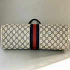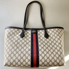 Gucci Tote Bag Ophidia GG Shelly Double G Used Description Brand: GUCCI Ophidia GG Medium Tote Bag GG Supreme 631685 Category: Tote bag, women's, shoulder bag Color: Beige Navy ★Specifications Material: Leather, Genuine Leather, Coated Canvas Pockets: 2 (inside) Height: 28cm Width: 38 (bottom) - 45cm (top) Depth: 14cm Handle: 25cm (height) Please allow for some errors. ★Condition There is no damage that impairs its functionality and it is of a quality that you can use for a long time to come. There are stains, makeup stains, ink stains, etc. on the inside. Also, very fine silver glitter has penetrated into the fibers of the inner lining, making it sparkle. The exterior is very clean, so I think it's a great deal for those who don't mind the inside being a little dirty. There is a little wear on the corners, but it is on the bottom corner so it is not noticeable. - The material is thin so it may lose its shape a little, but it will not affect use. 【 Shipping 】 DHL. ( 4-10 days to arrival) I can not responsible for normal SAL shipping loss or damage. For expensive items we recommend EMS Depending on the size and weight after packing the items, The shipping method may change depending on your location. Please contact us for additional charges Shipping is only available to the address registered in Paypal. Please note that any address not registered in Paypal is not acceptable to ship. Shipping is available from Monday to Friday. Weekends are not available because post office is closed. 【Return】 No Return 【International Buyers - Please Note: 】 Import duties, taxes, and charges are not included in the item price or shipping cost. These charges are the buyer's responsibility. Please check with your country's customs office to determine what these additional costs will be prior to bidding or buying.