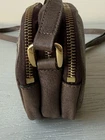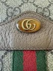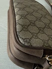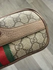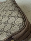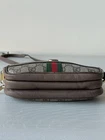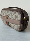 The Gucci Ophidia GG Triple Zipped Crossbody Bag is a stylish and versatile accessory for women. This rectangular shaped bag features the iconic Gucci GG pattern on the exterior, made from canvas material with gold hardware accents. The brown leather crossbody strap adds a touch of luxury to the design, perfect for casual or travel occasions. With a zip closure and limited dimensions of 8 inches in width, 4 inches in height, and 2 inches in depth, this bag offers a chic and practical style for everyday use. Condition: scratches at hardware. Scuffs and peeling at lining leather and base. Inside: scuffs, markings and peeling. Creasing at strap.