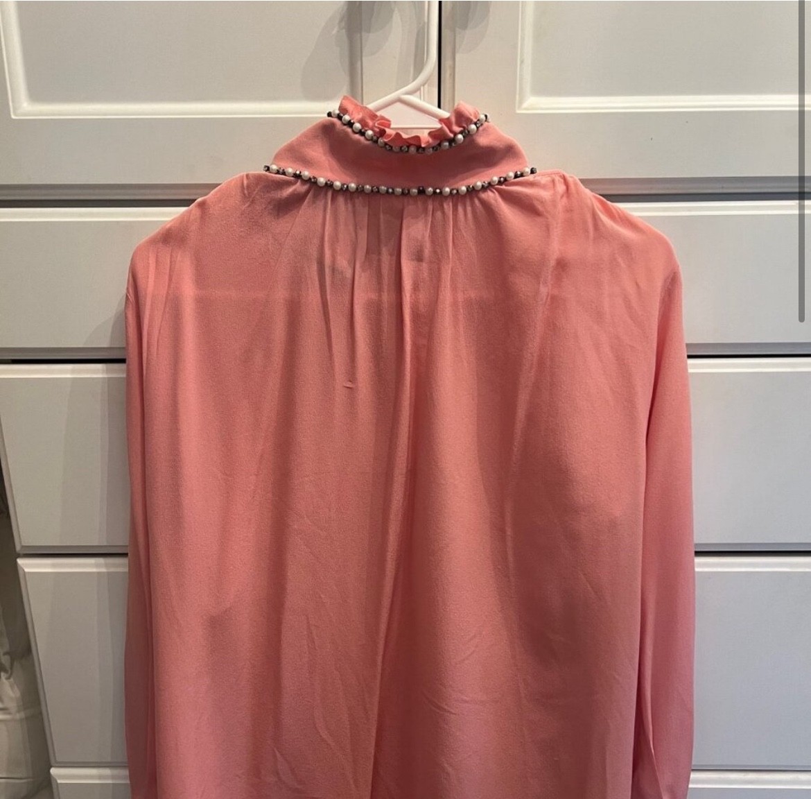 This stunning Gucci silk blouse is an absolute dream! The delicate pink fabric feels luxurious, and the pearl-embellished neckline adds such elegant detail. It’s in perfect condition, barely worn, and totally worth the splurge. The fit is flattering, and the quality is unmistakably high-end. A timeless piece that elevates any outfit effortlessly. Love it!
