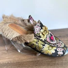 Step into luxury with these iconic Gucci Princetown mules. Crafted with a stunning jacquard pattern and lined with plush kangaroo fur, these mules offer unparalleled comfort and style. The classic Gucci design is instantly recognizable, making them a statement piece for any wardrobe. Size: 37 (EU) 6.5 / 7 (US) Condition: Excellent pre-owned. Normal scuffing on bottoms and light wear on insoles. Exterior is in great condition with no spots, scratches, etc. Please see all photos. Super soft kangaroo Fur insole with bright elaborate embroidered pattern of pink, gold, blue, and yellow with a heart accent. Length measuring approx. 10.1" long on bottom Width at widest point measuring approx. 3.1" across on bottom Does not come with box or Gucci dust bag. Will come with protective dust bag from TRR. These mules are perfect for adding a touch of high-end fashion to your everyday look. Don't miss the opportunity to own a pair of these coveted Gucci Princetown mules!