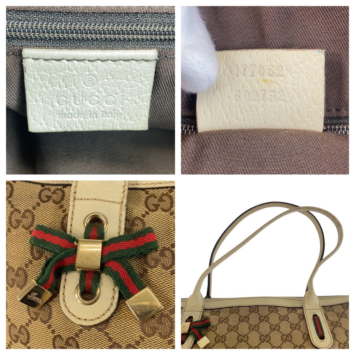 - General information - Brand : GucciItem name : Gucci Princy GG Canvas 2way bagModel number : 177052 - Design -Type : Shoulder BagMaterial : CanvasColor : BeigeGender : Female- Size -Size : Length : 34-36Depth : 12Height : 22Shoulder strap : 53Item Material : GG Canvas/LeatherItem Series : Princy Sherry LineItem Color : Beige Ivory GoldClosure Type : ZipperInterior : Main compartment x 1, Zipper pocket x 1, Open pocket x 1- Inventory -Serial Number : SKU : 120210007182000A0025890042- Included Items -Accessories : null*Before purchasing, please refer to the images of the accessories included with the item.- Condition -Condition : Good ConditionRank : Used A Used condition with obviously scratches and stains.Condition Notice : Before purchasing, please refer to the images for the exact Tribute to Style Our eBay Store About Us Contact Us Add to favourite sellers Gucci Princy GG Canvas 2way bag - General information - Brand : GucciItem name : Gucci Princy GG Canvas 2way bagModel number : 177052 - Design -Type : Shoulder BagMaterial : CanvasColor : BeigeGender : Female- Size -Size : Length : 34-36Depth : 12Height : 22Shoulder strap : 53Item Material : GG Canvas/LeatherItem Series : Princy Sherry LineItem Color : Beige Ivory GoldClosure Type : ZipperInterior : Main compartment x 1, Zipper pocket x 1, Open pocket x 1- Inventory -Serial Number : SKU : 120210007182000A0025890042- Included Items -Accessories : null*Before purchasing, please refer to the images of the accessories included with the item.- Condition -Condition : Good ConditionRank : Used A Used condition with obviously scratches and stains.Condition Notice : Before purchasing, please refer to the images for the exact condition of the item. Measurments: width: 120 mm length: 350 mm height: 220 mm strap length: 530 mm handle drop: 0 mm Product Details UPC 1539494154752 HEIGHT 220 mm WIDTH 120 mm LENGTH 350 mm HANDLE DROP STRAP LENGTH