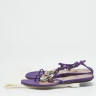 These Gucci satin sandals combine the brand’s iconic Interlocking G logo with dazzling crystal embellishments. The thong style offers a minimalist and chic aesthetic, while the purple hue adds a bold and royal touch. Perfect for a stylish, luxury look on warm weather occasions.Certified by The Luxury Closet - This item has gone through a detailed authentication process overseen by our experts. We offer a lifetime guarantee of authenticity on all our items. Import duties, taxes and charges are not included in the item price. These charges are the buyers responsibility. Please check with your country’s customs office to determine what these additional cost will be prior to buying. Our eBay Store About Us Contact Us Add to Favorite Sellers Gucci Purple Satin Crystal Embellished Interlocking G Thong Flat Sandals Size 36 $206.8 These Gucci satin sandals combine the brand’s iconic Interlocking G logo with dazzling crystal embellishments. The thong style offers a minimalist and chic aesthetic, while the purple hue adds a bold and royal touch. Perfect for a stylish, luxury look on warm weather occasions. Product Details Brand Color Purple Dimensions Material Satin Size 36 Outsole Width 9 cm Outsole Length 23 cm Heel Height Includes Original Dustbag Certified by The Luxury Closet This item has gone through a detailed authentication process overseen by our experts. We offer a lifetime guarantee of authenticity on all our items. How We Check The in-house team of experts at The Luxury Closet is highly trained to verify the authenticity and the condition of the luxury products. They ensure that only 100% authentic items are put on sale.The evaluation process is unique with its own mix of assessment criteria and differs according to the category. Each item is evaluated based on the following combination of hallmarks, hardware, stitching, symmetry, material, craftsmanship, stamping, codes, hologram stickers, and packaging. Our authenticators also check if the items have been modified or amended (e.g., aftermarket diamonds, replaced batteries, repaired bags, etc.) International Buyers Import duties, taxes and charges are not included in the item price. These charges are the buyers responsibility. Please check with your country’s customs office to determine what these additional cost will be prior to buying.