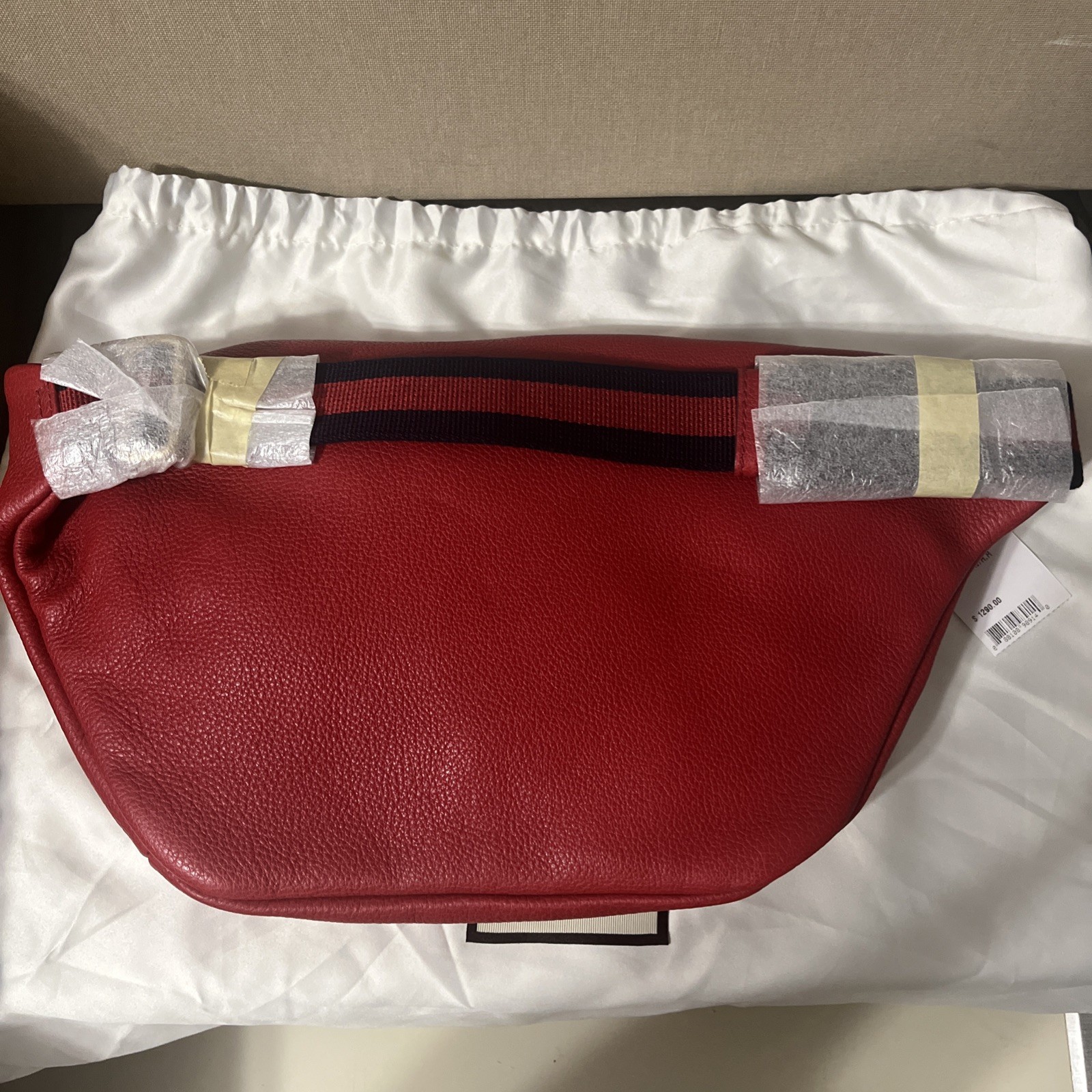 The Gucci Red Leather Logo Web Belt Bag is a stylish handbag designed for women. Made from high-quality leather in a striking red color, this bag features the signature Gucci logo on the exterior, adding a touch of luxury to any outfit. Perfect for daily use or special occasions, this belt bag is a versatile accessory that complements various ensembles effortlessly.