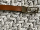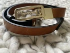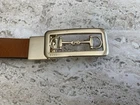 This Gucci belt exudes luxury, sophistication, and elegance. Crafted from smooth leather, it features a rectangular Horsebit buckle in gold-tone for a luxe look. The buckle can be turned to allow for either the black side or brown side shown so it can be reversed to match your ensemble. Material: Leather Width: 2 cm Hardware: Gold-Tone Size: 35.5” total length of leather Origin: italy Excellent condition!