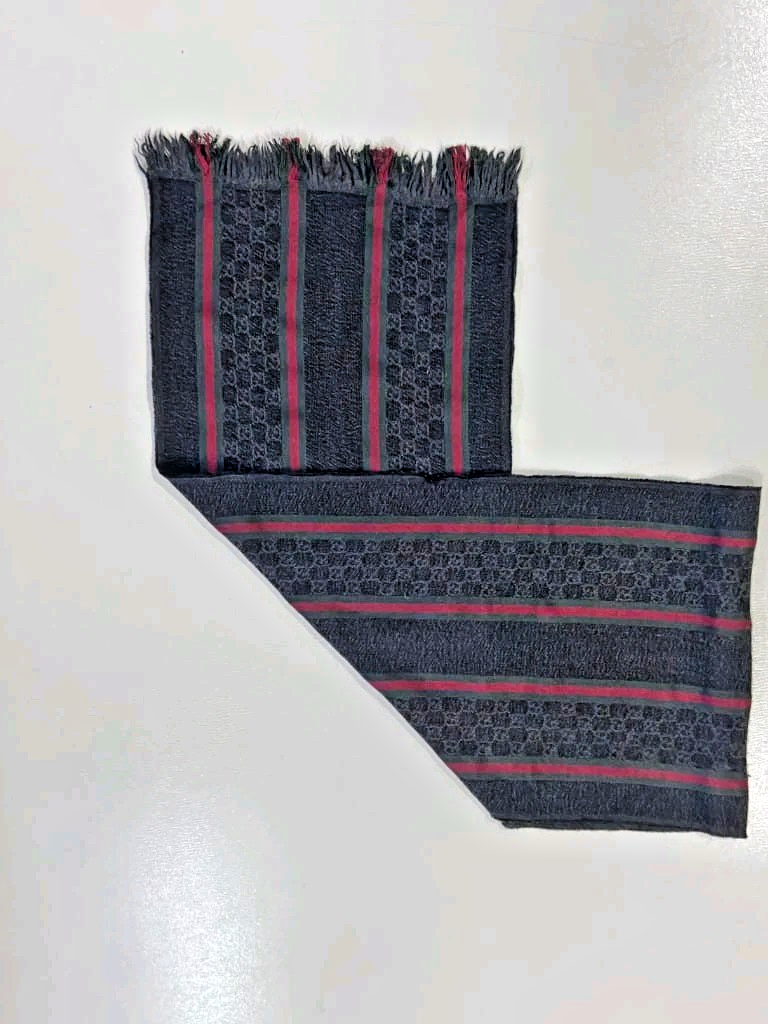The Gucci Guccissima scarf is a timeless and stylish accessory for both men and women. It features a sleek gray exterior with a bold red lining, crafted from high-quality wool. Known for its elegance and signature style, this scarf adds a touch of luxury to any outfit. Versatile and fashionable, it’s a standout piece that easily elevates your look.