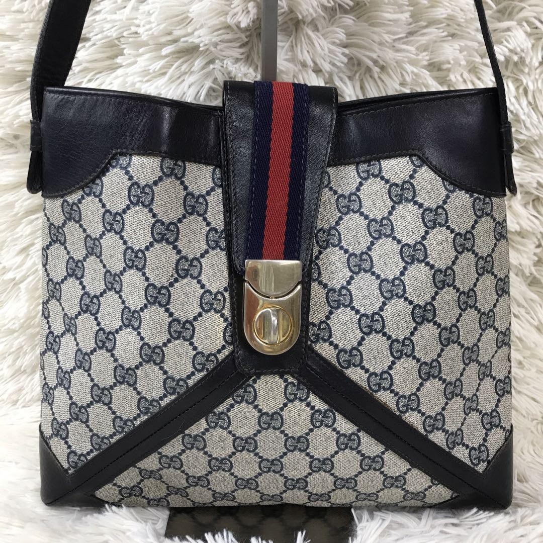 Gucci Sheri Line Leather Navy Shoulder Bag Used Key Features - Brand: Gucci - Product Type: Shoulder Bag - Model: Shelley Line GG Leather Shoulder Bag - Material: Genuine Leather, PVC - Exterior Color: Beige and Navy - Hardware: Gold-tone accents - Size: Bag Height: 10.8 inches, Bag Width: 12.6 inches, Bag Depth: 2 inches, Shoulder Strap Length: 29.1 inches (convert cm to inches) - Features: Interior zip pocket, vintage design, classic GG logo, adjustable shoulder strap - Condition: Used, interior shows some dirt, exterior has no noticeable scratches or stains, cleaned and lightly retouched - Country of Manufacture: Italy - Style: Vintage, Classic, Crossbody - Occasion: Casual, Everyday Use - Handle/Strap Material: Leather - Handle/Strap Color: Beige/Navy - Hardware Color: Gold - Lining Material: Fabric - Bag Shape: Rectangular - Closure: Z Specifications Brand Gucci Country Japan Product Description Item Title Popular Gucci Sheri Linegg Leather Navy Shoulder Bag Payment Supports managed payments Please pay within 5 days after auction is finished. About Us We are located in Japan. It's our pleasure to make you happy by proposing our recommend item. If you have any questions or request about items, please feel free to ask us. International Buyers - Please Note: -Import duties, taxes, and charges are not included in the item price or shipping charges. These charges are the buyer's responsibility. -Please check with your country's customs office to determine what these additional costs will be prior to bidding/buying. -These charges are normally collected by the delivering freight (shipping) company or when you pick the item up - do not confuse them for additional shipping charges. -We do not mark merchandise values below value or mark items as - gifts - The US and International government regulations prohibit such behavior. Thank you for your understanding.