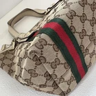 This Gucci bag is absolutely stunning! The GG pattern is iconic and the brown tones are so versatile. Despite some minor wear mentioned, it's in great condition and feels incredibly durable. Perfect size for daily essentials, and the leather handles add such a luxurious touch. Very happy with this purchase!