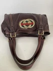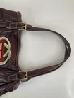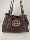 This Gucci Tote Bag in brown leather is a stylish addition to any outfit. The bag features the iconic Sherry Line design and a spacious interior perfect for carrying all your daily essentials. The handle drop is between 7.68 to 9.65 inches, making it easy to carry and versatile for different shoulder sizes. The bag is crafted in Italy and made of high-quality leather, ensuring durability and longevity. It's a pre-owned item in great condition, perfect for those who want a designer piece without breaking the bank.