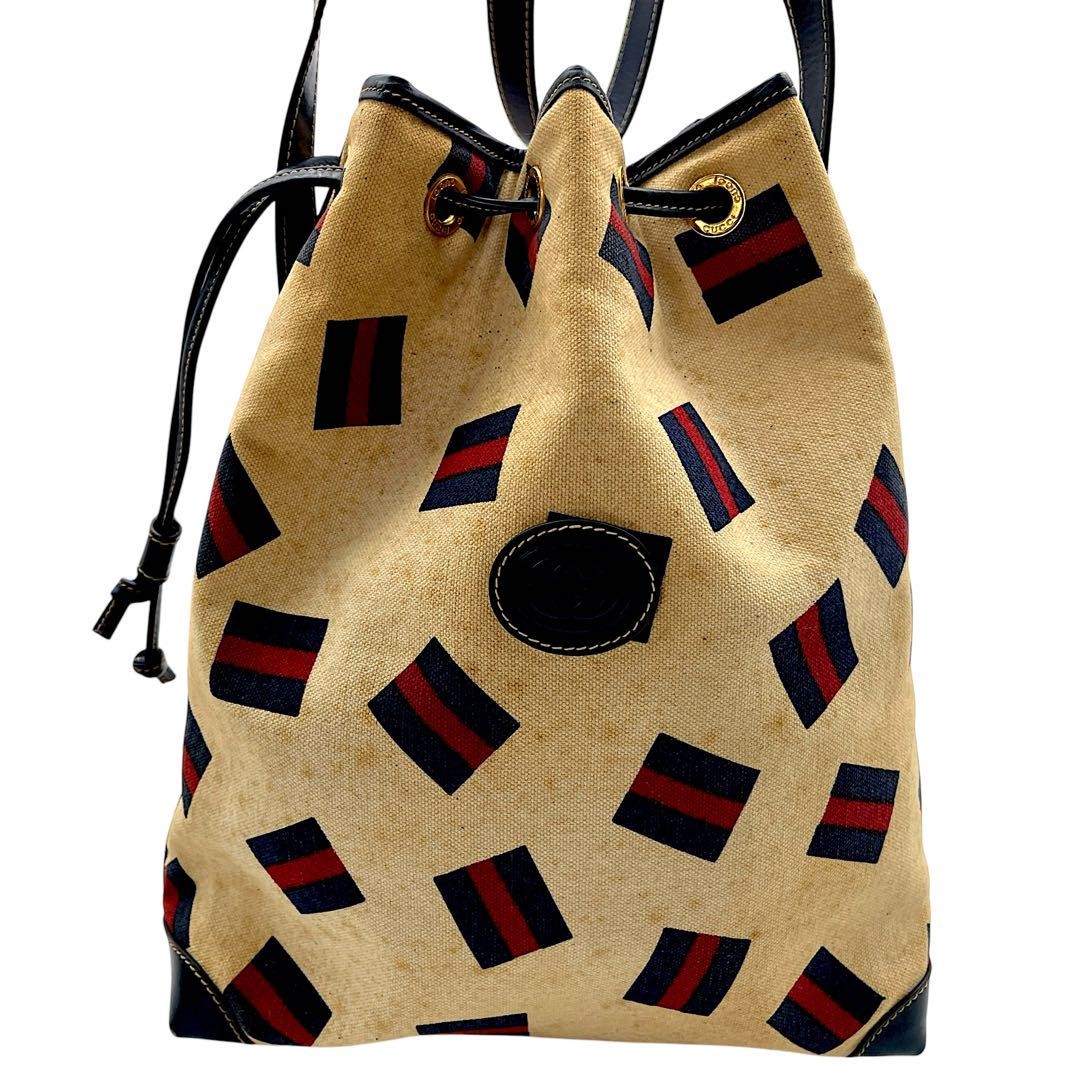 Gucci Drawstring Bag Sherry Line Interlocking GG Blue Red Canvas Tote /Used++ Features Product Description: - Brand: GUCCI - Product Type: Shoulder Bag - Model: Signature PVC Shoulder Bag - Color: Beige - Material: Canvas with suede and leather accents - Size: Approx. 30cm (H) x 24cm (W) x 10cm (D) - Shoulder Strap Length: Approx. 90cm - Features: Shoulder and crossbody wear, simple design with charm, suitable for daily use, business, formal events, and parties - Condition: Used, with exterior stains and interior powdery marks; still functional and wearable - Accessories: None included Item Specifics: C:Brand: GUCCI C:Product Line: Signature C:Style: Shoulder Bag C:Exterior Material: Canvas C:Handle/Strap Material: Leather, Suede C:Exterior Color: Beige C:Size: Approx. 30cm (H) x 24cm (W) x Specifications Brand Gucci Country Japan Department Woman Theme Bag Item Title Gucci Drawstring Bag Sherry Line Interlocking Blue Red Payment Supports managed payments Please pay within 5 days after auction is finished. About Us We are located in Japan. It's our pleasure to make you happy by proposing our recommend item. If you have any questions or request about items, please feel free to ask us. International Buyers - Please Note: -Import duties, taxes, and charges are not included in the item price or shipping charges. These charges are the buyer's responsibility. -Please check with your country's customs office to determine what these additional costs will be prior to bidding/buying. -These charges are normally collected by the delivering freight (shipping) company or when you pick the item up - do not confuse them for additional shipping charges. -We do not mark merchandise values below value or mark items as - gifts - The US and International government regulations prohibit such behavior. Thank you for your understanding.