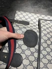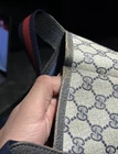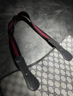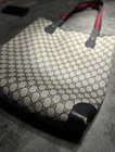 The Gucci Sherry Line Vintage Shoulder Leather Tote Bag is a luxurious and stylish accessory perfect for various occasions like travel, weddings, parties, or formal events. This large rectangular bag features a classic monogram pattern on beige leather with silver hardware accents. The red cotton handles and black canvas lining add a touch of elegance to the piece. Made in Italy, this designer bag embodies the essence of Italian craftsmanship and vintage charm, making it a timeless addition to any wardrobe.