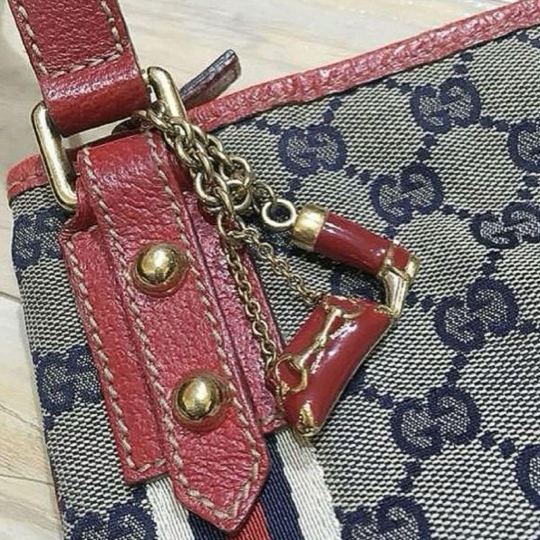 Gucci Sherry Line Shoulder Bag with Charm Navy/Red Leather Details Used Key Features Gucci GG Pattern Bag - Model: Vintage GG Canvas Shoulder Bag - Exterior Material: Cowhide leather, canvas - Exterior Color: Navy with red and navy Shelley line accents - Size: Width 9.8 inches, Height 9.4 inches, Depth 1.2 inches - Handle/Strap: Shoulder strap length approximately 45.3 inches - Features: Classic GG pattern, charming navy and red accents, decorative charms - Condition: Used, minor scratches on leather edges, overall good condition with minimal signs of use - Country/Region of Manufacture: Italy - Pattern: GG monogram - Occasion: Casual, everyday use - Hardware Material: Metal with gold-tone finish - Closure: Open top - Accessories: Charms included - Vintage: Yes - Note: Original purchase price approximately 90,000 yen Specifications Brand Gucci Country Japan Product Description Item Title Color Gucci Sherry Line Shoulder Bag With Charm Payment Supports managed payments Please pay within 5 days after auction is finished. About Us We are located in Japan. It's our pleasure to make you happy by proposing our recommend item. If you have any questions or request about items, please feel free to ask us. International Buyers - Please Note: -Import duties, taxes, and charges are not included in the item price or shipping charges. These charges are the buyer's responsibility. -Please check with your country's customs office to determine what these additional costs will be prior to bidding/buying. -These charges are normally collected by the delivering freight (shipping) company or when you pick the item up - do not confuse them for additional shipping charges. -We do not mark merchandise values below value or mark items as - gifts - The US and International government regulations prohibit such behavior. Thank you for your understanding.
