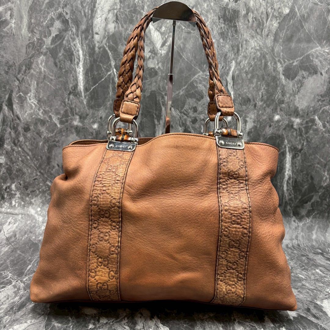 Gucci Leather Tote Bag Shima Braided Bamboo A4 Used Key Features - Size: approximately 16.1 inches (41cm) x 11 inches (28cm) x 4.7 inches (12cm) - Condition: Please refer to the images for details - Includes: Bag body and care card - Details: Shipped via Yamato's Rakuraku Mercari Bin, within the specified period - Authenticity: Certified by Japan's Self-Managed Distribution Association (AACD), purchased from a brand reuse shop - Notes: Negotiations take priority; no custom listings available - No accessories are included unless noted in the title or product description. If you have any questions, please ask before purchasing. Specifications Brand Gucci Country Japan Exterior Material Leather Style Tote Bag Material Leather Product Description Item Title Rare Gucci Leather Tote Bag Shima Braided Bamboo A4 Payment Supports managed payments Please pay within 5 days after auction is finished. About Us We are located in Japan. It's our pleasure to make you happy by proposing our recommend item. If you have any questions or request about items, please feel free to ask us. International Buyers - Please Note: -Import duties, taxes, and charges are not included in the item price or shipping charges. These charges are the buyer's responsibility. -Please check with your country's customs office to determine what these additional costs will be prior to bidding/buying. -These charges are normally collected by the delivering freight (shipping) company or when you pick the item up - do not confuse them for additional shipping charges. -We do not mark merchandise values below value or mark items as - gifts - The US and International government regulations prohibit such behavior. Thank you for your understanding.