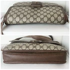 The dimensions are approximately 7.68 inches in height, 11.02 inches in width, and 2.17 inches in depth. The shoulder strap length is approximately 40.94 inches. It is made of PVC leather and genuine leather with a GG Supreme brand logo and interlocking gold hardware, suitable for shoulder or crossbody wear. It features one open pocket and one zipper pocket inside. The exterior has some signs of use but is generally clean. The interior has some signs of use but is generally clean. The colors are beige and brown. I promise fast shipping via FedEx or DHL as soon as possible! Import duties, taxes and charges are not included in the item price or shipping charges. These charges are the buyer’s responsibility. These charges are normally collected by the delivering freight (shipping) company or when you pick the item up - do not confuse them for additional shipping charges.