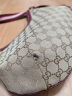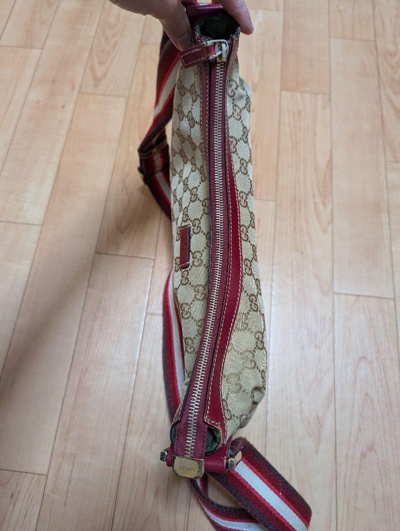 The Gucci shoulder bag features a beige base with vermilion accents. Only the bag is included. The threads are worn and thin on the exterior bottom of the bag, at the seams where the fabric is joined, on both the front and back sides, in a total of four places. There are no other noticeable stains. I promise fast shipping via FedEx or DHL as soon as possible! Import duties, taxes and charges are not included in the item price or shipping charges. These charges are the buyer’s responsibility. These charges are normally collected by the delivering freight (shipping) company or when you pick the item up - do not confuse them for additional shipping charges.