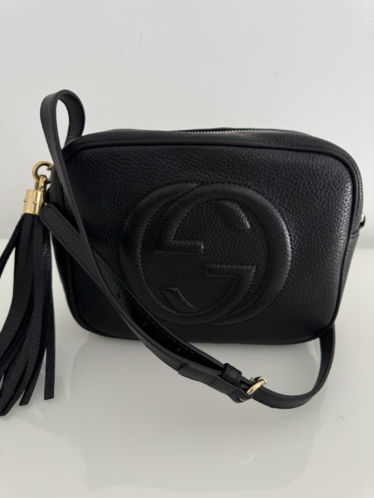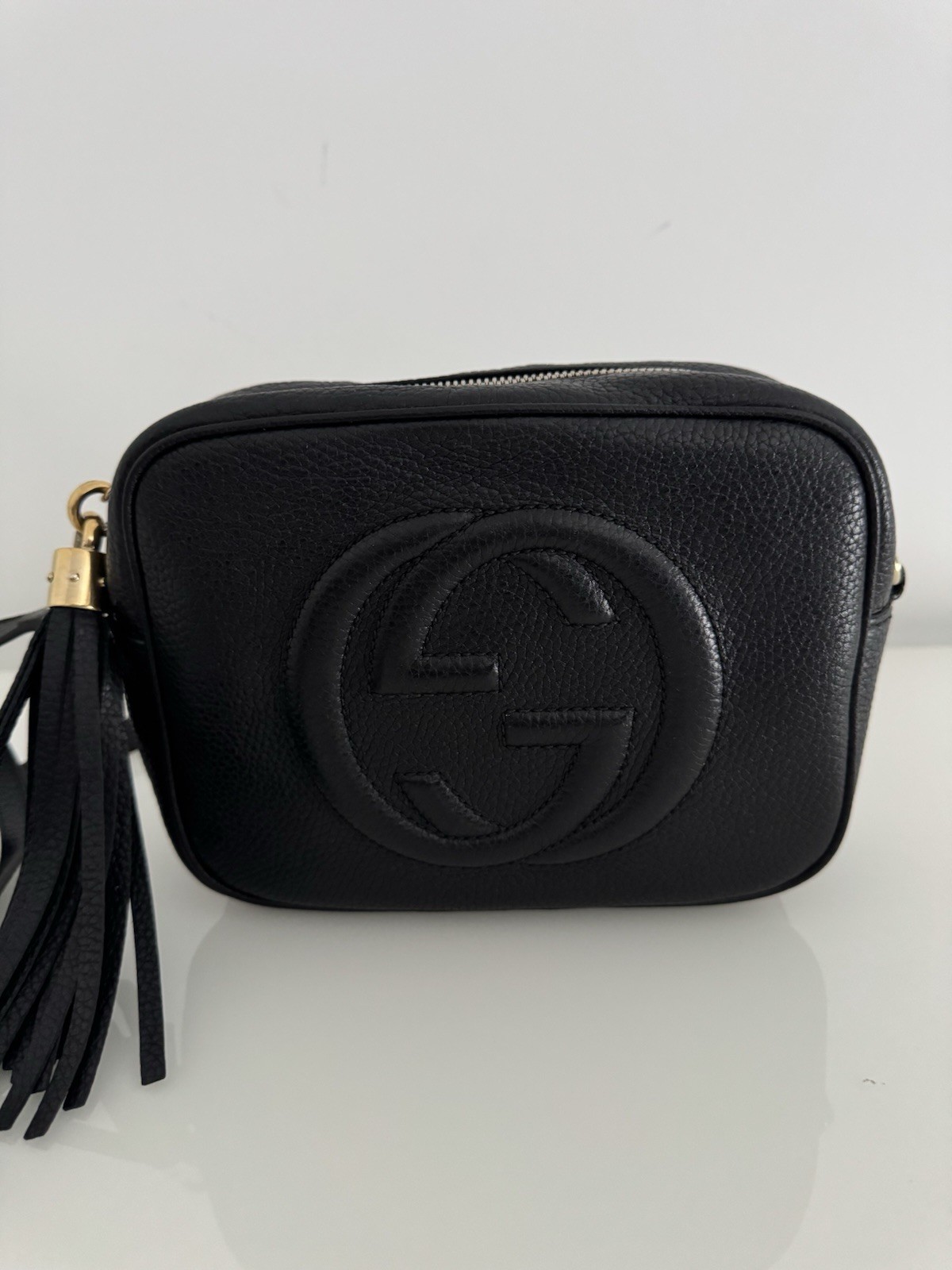 Gucci soho calf leather crossbody Bag Black This Beautiful bag purchased from London Only used few times In Excellent condition 😍 Purchased date July 2019 just before COVID ( didn’t get to use much) Comes with Dust Bag Box Cary Bag Invoice
