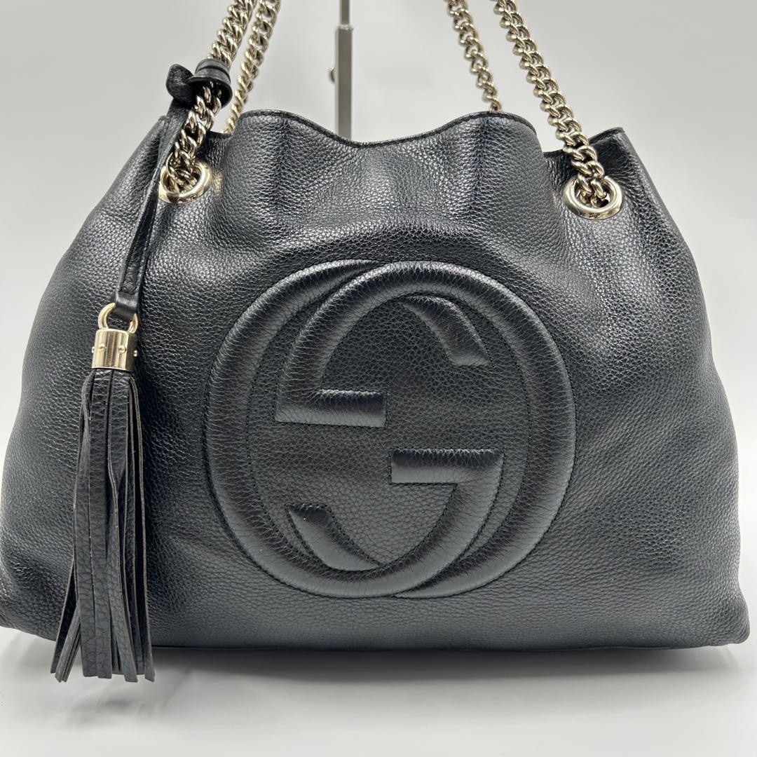 Gucci Soho Chain Bag Leather Shoulder Women's Black Key Features - Brand: Gucci - Product Type: Soho Chain Shoulder Bag - Model: Interlocking GG Logo Tote - Material: Leather (Saffiano) - Color: Black - Style: 2-way Shoulder Bag - Features: Genuine leather, interlocking GG logo, chain strap, hand and shoulder carry options - Size: - Bag Height: 10.2 inches (26 cm) - Bag Width: 14.2 inches (36 cm) - Bag Depth: 4.7 inches (12 cm) - Condition: Used with signs of wear including scratches, stains, and minor damages; corners reinforced; interior shows usage. - Additional: Serial number 308982 204991; includes original hardware; made in Italy. Specifications Brand Gucci Country Japan Product Description Item Title Gucci Soho Chain Bag Shoulder Leather Women'S Black Payment Supports managed payments Please pay within 5 days after auction is finished. About Us We are located in Japan. It's our pleasure to make you happy by proposing our recommend item. If you have any questions or request about items, please feel free to ask us. International Buyers - Please Note: -Import duties, taxes, and charges are not included in the item price or shipping charges. These charges are the buyer's responsibility. -Please check with your country's customs office to determine what these additional costs will be prior to bidding/buying. -These charges are normally collected by the delivering freight (shipping) company or when you pick the item up - do not confuse them for additional shipping charges. -We do not mark merchandise values below value or mark items as - gifts - The US and International government regulations prohibit such behavior. Thank you for your understanding.
