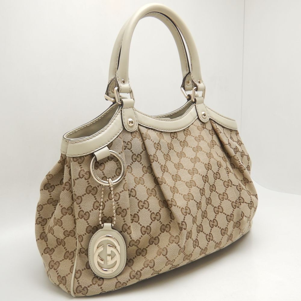 Gucci 211944 Sookie Tote Bag Gg Canvas Beige/252295 Used Key Features - Brand: Midoriya Honten - Product Type: Canvas Bag - Model Number: 211944 - Material: GG Canvas - Color: Beige with Gold Hardware - Size: W34cm x H30cm x D13cm - Features: Magnetic closure, includes storage bag, charm - Condition: Used, AB rank - Details: Minor stains, wrinkles, scratches, scuffs on corners, small scratches on metal parts, interior stains, some wrinkles and dirt, minor wear on edges and pockets - Additional Notes: Professionally cleaned by our store. Colors may vary slightly due to monitor settings. Specifications Brand GUCCI Country Japan Exterior Color Please refer to the photo. Department Women Lining Color Please refer to the photo. Handle/Strap Color Please refer to the photo. Handle/Strap Material Please refer to the photo. Hardware Color Please refer to the photo. Vintage No Bag Width Please contact us. Bag Height Please contact us. Shape Please refer to the photo. Occasion Casual Handmade No Product Description Item Title Gucci 211944 Sookie Tote Bag Gg Canvas Beige/252295 Used Payment Supports managed payments Please pay within 5 days after auction is finished. About Us We are located in Japan. It's our pleasure to make you happy by proposing our recommend item. If you have any questions or request about items, please feel free to ask us. International Buyers - Please Note: -Import duties, taxes, and charges are not included in the item price or shipping charges. These charges are the buyer's responsibility. -Please check with your country's customs office to determine what these additional costs will be prior to bidding/buying. -These charges are normally collected by the delivering freight (shipping) company or when you pick the item up - do not confuse them for additional shipping charges. -We do not mark merchandise values below value or mark items as - gifts - The US and International government regulations prohibit such behavior. Thank you for your understanding.