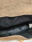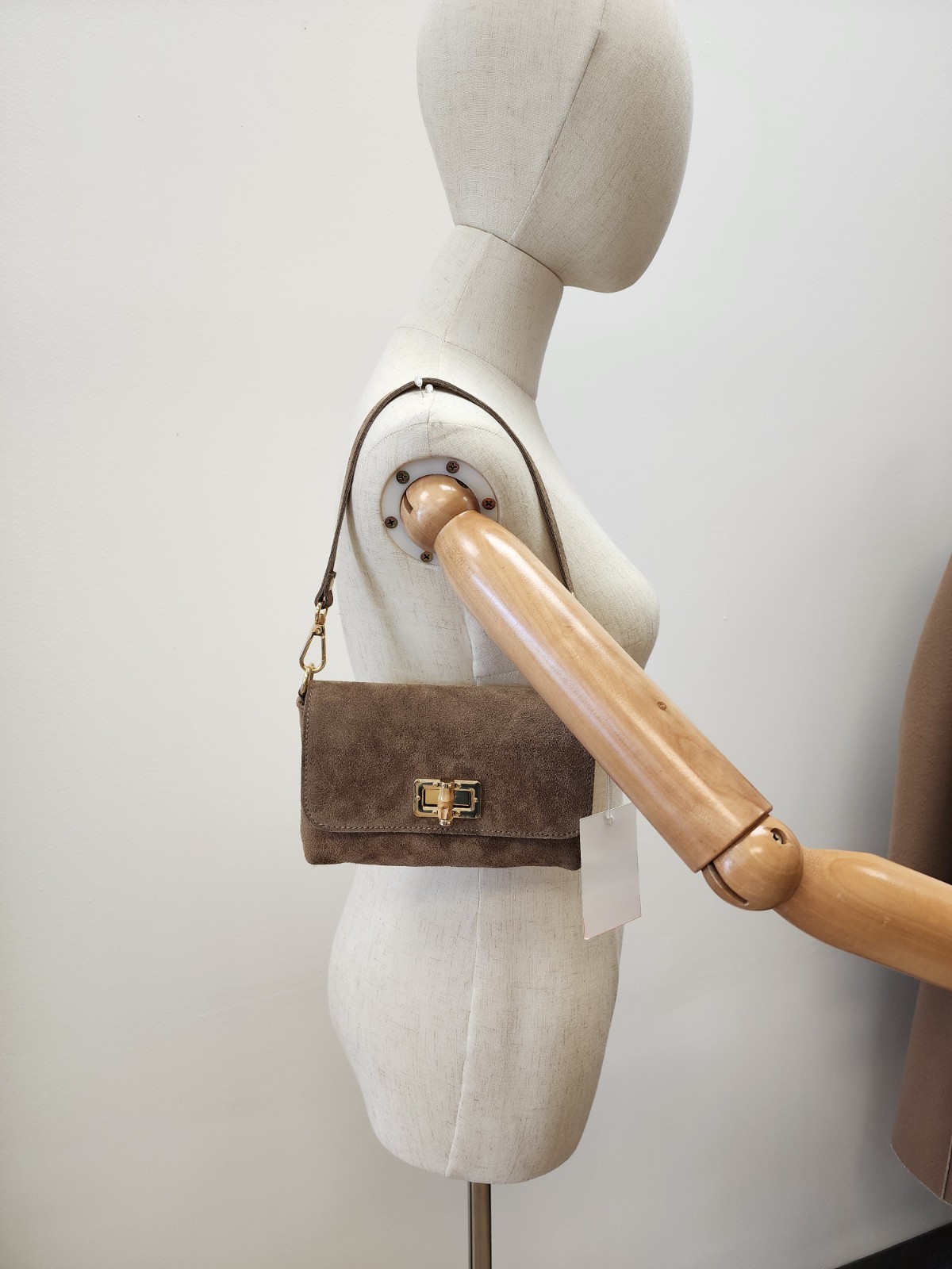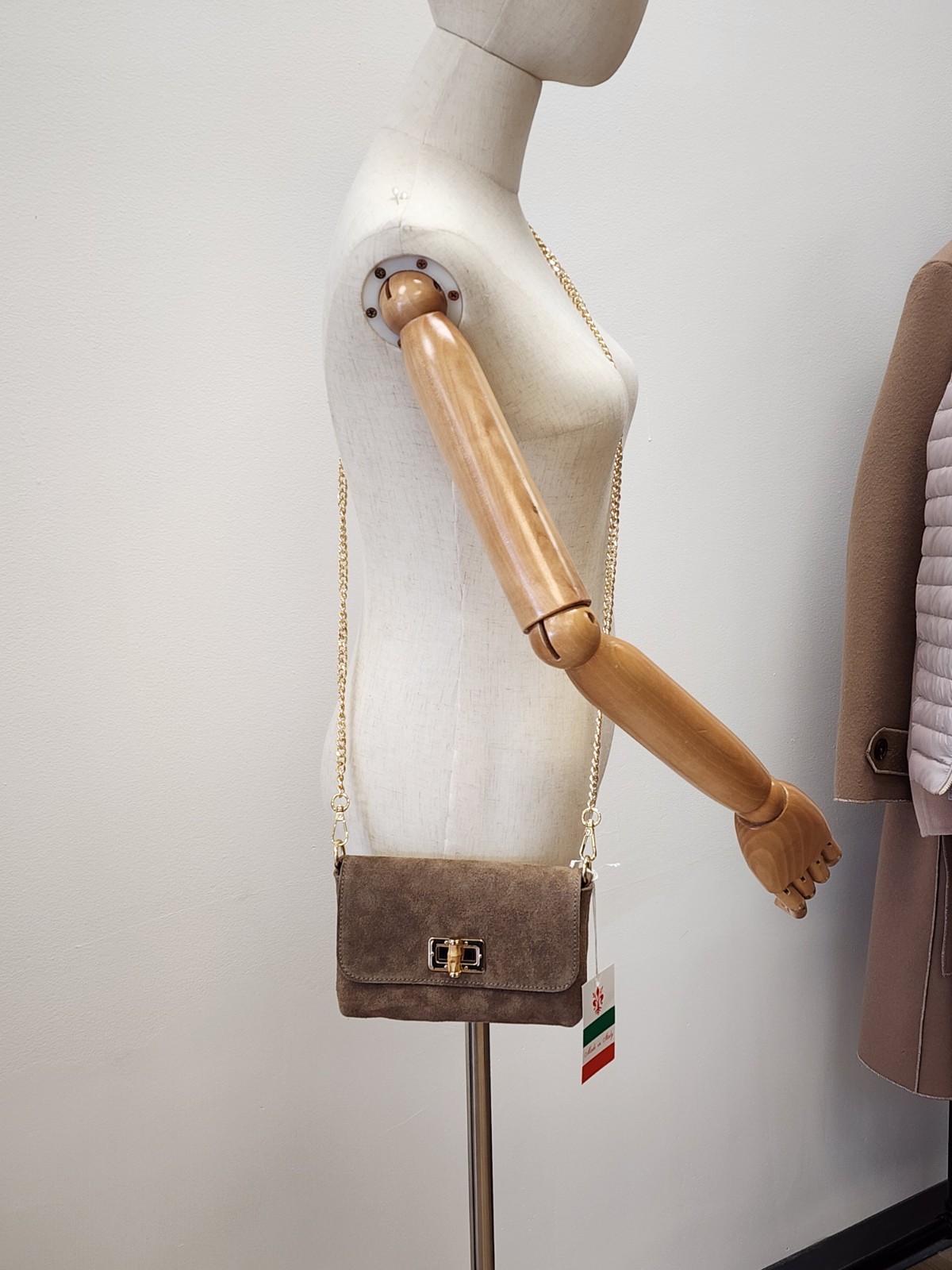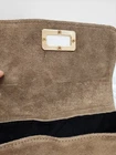 The NWT Made In Italy Suede Mini Crossbody with Detachable Handle is a luxurious handbag designed for women. Crafted from high-quality suede in a dark taupe color, this stylish crossbody bag exudes elegance and sophistication. The detachable handle adds versatility and convenience, making it perfect for various occasions. Made in Italy, this piece reflects attention to detail and quality craftsmanship, making it a timeless addition to any wardrobe.