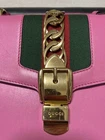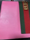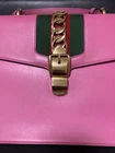 Gucci Sylvie 2Way Hand Shoulder Bag Sherry Pink Leather Used Key Features - Brand: Gucci - Product Type: 2-Way Shoulder Tote Bag - Model: 368679 - Style: Vintage, Boston, Handbag, Tote, Shoulder Bag - Exterior Material: Leather - Exterior Color: Pink - Pattern: Bloom Pattern with GG Interlocking Monogram - Size: Bag Height: 8.7 inches, Bag Width: 12.4 inches, Bag Depth: 4.7 inches - Handle Style: Double Handles, Handle Drop: 11.8 inches - Strap: Detachable Shoulder Strap, Strap Drop: 46.1-50 inches - Hardware Material: Gold-tone Metal - Closure: Open Top - Features: Vintage, 2-Way Use (Handheld and Shoulder), Includes Shoulder Strap - Condition: Used, minor scratches on leather and metal hardware, interior has some black stains, overall good vintage condition - Accessories: Shoulder Strap included - Country/Region of Manufacture: Specifications Brand Gucci Country Japan Product Description Item Title Gucci Sylvie 2Way Hand Shoulder Sherry Pink Payment Supports managed payments Please pay within 5 days after auction is finished. About Us We are located in Japan. It's our pleasure to make you happy by proposing our recommend item. If you have any questions or request about items, please feel free to ask us. International Buyers - Please Note: -Import duties, taxes, and charges are not included in the item price or shipping charges. These charges are the buyer's responsibility. -Please check with your country's customs office to determine what these additional costs will be prior to bidding/buying. -These charges are normally collected by the delivering freight (shipping) company or when you pick the item up - do not confuse them for additional shipping charges. -We do not mark merchandise values below value or mark items as - gifts - The US and International government regulations prohibit such behavior. Thank you for your understanding.
