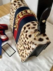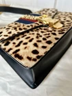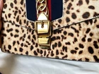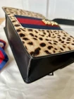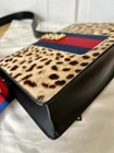 Gucci Leopard Fur Sylvie Handbag Small Nymphaea 2 Way Web Tote Bag Guaranteed authentic Gucci Beautiful Gucci bag! Leopard print fur with black leather trim. Gucci web in blue and red. Gold tone hardware. Gucci engraved on the front clasp. Detachable black leather shoulder strap. Red, white and blue ribbon that can be used as a strap. Gold star details on the ends of the ribbon. Beige interior with zipper pocket and slit pocket. Small to Medium size. Please see measurements. Mannequin is size 4 petite for reference. Comes with Gucci dust bag, booklet, card and 2 Gucci straps. Please read the condition comments and zoom in on every photo. I do my best to represent my items accurately. Condition: This is a preowned Gucci bag and does show signs of use. The exterior has light wear overall. The fur on the back side at the top edges is worn. Please zoom in. And Zoom in on the stitching of the fur. Black leather trim has scratches. The interior black leather flap has scratches. Interior has light wear all over and light soiling all over. Hardware has some scratches. Zoom in. Wrinkling and wear to ribbon strap. Please zoom in on every photo to see details. Shipping within the United States is included. A signature will be required for delivery. Approximate measurements: Height - 6 3/4” Length - 9 3/8” - 10” Depth - 3 1/8” Strap Drop - 3 1/4” Ribbon is 65 1/2” Comes from a smoke free home. I am thankful to have many repeat buyers because they know I only sell authentic and I do my best to be accurate in my listings. I sell only what I know to be authentic. I have things authenticated through Real Authentication. You can have a handbag authenticated online. You send clear close up photos of every detail. It takes about a day. Well worth it! You can use code 74F34DF for 5 dollars off an authentication. If sold through eBay’s authenticity guarantee the handbag will ship to eBay for authentication and condition confirmation and they will forward it on to you. That takes about 7-10 days. PLEASE CHECK MY OTHER LISTINGS! I HAVE MANY MORE GUCCI BAGS TO LIST SO PLEASE CHECK BACK. * PLEASE READ! PLEASE PAY AT END OF AUCTION OR ITEM WILL BE RELISTED! PLEASE UNDERSTAND THAT I AM NOT A STORE AND AM NOT IN A POSITION TO WAIT A LONG TIME FOR PAYMENT, AND UNFORTUNATELY MANY PEOPLE ON EBAY BID BUT NEVER PAY SO I HAD TO TAKE UP THIS POLICY. THANK YOU FOR YOUR UNDERSTANDING! * I DO MY BEST TO NOTE ALL FLAWS AND/OR CONDITION ISSUES AND SHOW CLEARLY IN PHOTOS. I DO EVERYTHING I CAN TO LIST THE ITEM ACCURATELY, AND NOTE ANY FLAWS I SEE. IF I MESSED UP THE LISTING IN SOME WAY PLEASE LET ME KNOW. I AM HUMAN. I DO MAKE MISTAKES, BUT I WANT TO MAKE YOU HAPPY!! SHIPPING - I USUALLY SHIP THE DAY AFTER PAYMENT, OR ON WEEKENDS AND HOLIDAYS I’LL SHIP THE NEXT BUSINESS DAY. I’M HAPPY TO ANSWER QUESTIONS THANK YOU! THANK YOU!