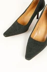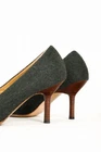 These pumps from Gucci circa Tom Ford era are crafted in a green wool, and feature stacked low heels, closed pointed toes, and leather lining and soles. Size: 7.5B Condition: Excellent; some scratching and wear on insoles, light wear on heels, moderate wear on outsoles. Approximate Measurements: Insole Length: 9.5” (24 cm) Heel Height: 3” (7.5 cm) Composition: Wool upper, leather lining and soles.