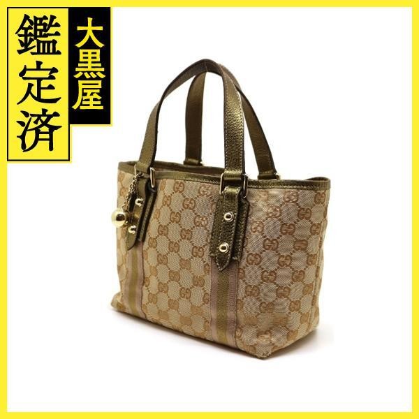 $ 242.16GUCCI GG Canvas Shelley Tote Bag in Khaki Beige & Dark Brown Leather Shoulder Bag