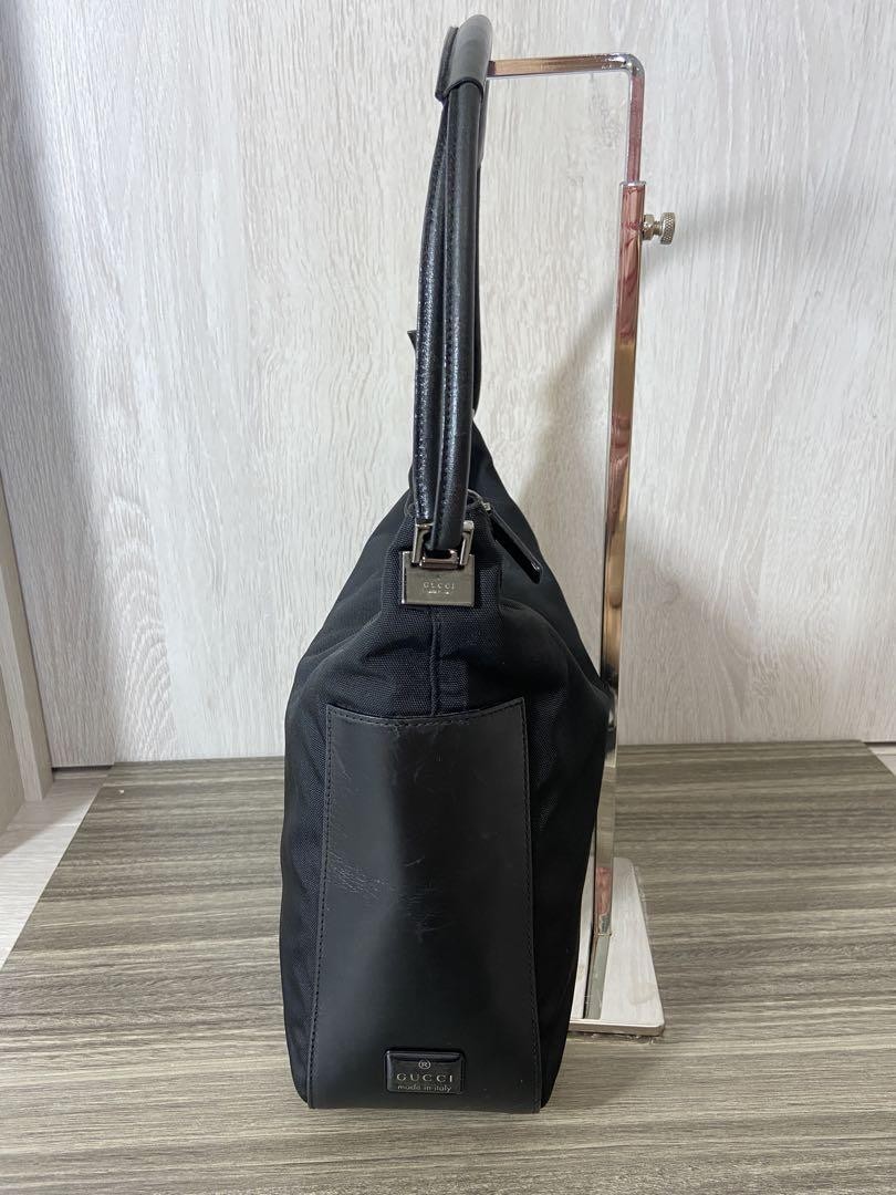 Gucci Tote Bag Nylon Leather Logo Plate Black 10in x 9.8in x 3.9in Used Key Features - Gucci tote bag made of nylon and leather with logo plaque - Color: Black - Size: approximately 10.2 inches (H) x 9.8 inches (W) x 3.9 inches (D) - Handle height / shoulder strap length: about 5.1 inches - Features: durable exterior, logo accents, internal zipper pocket, classic shape - Condition: Used with minor dirt, stains, color fading, scratches, and some leather wear inside; overall good condition for long-term use - Accessories: Gucci card, internal leather zipper pocket; external shoulder strap not compatible with bag size - Country/Region of Manufacture: Japan - Vintage: Yes - Material: C:Exterior Material - Nylon and Leather - Closure: Zipper - Handle/Strap Material: Leather - Handle Drop: 5.1 inches - Hardware Color: Gold-tone - Lining Color: Black - Lining Material: Fabric Specifications Brand Gucci Country Japan Product Description Item Title But Gucci Tote Bag Nylon Leather Logo Plate Black Payment Supports managed payments Please pay within 5 days after auction is finished. About Us We are located in Japan. It's our pleasure to make you happy by proposing our recommend item. If you have any questions or request about items, please feel free to ask us. International Buyers - Please Note: -Import duties, taxes, and charges are not included in the item price or shipping charges. These charges are the buyer's responsibility. -Please check with your country's customs office to determine what these additional costs will be prior to bidding/buying. -These charges are normally collected by the delivering freight (shipping) company or when you pick the item up - do not confuse them for additional shipping charges. -We do not mark merchandise values below value or mark items as - gifts - The US and International government regulations prohibit such behavior. Thank you for your understanding.