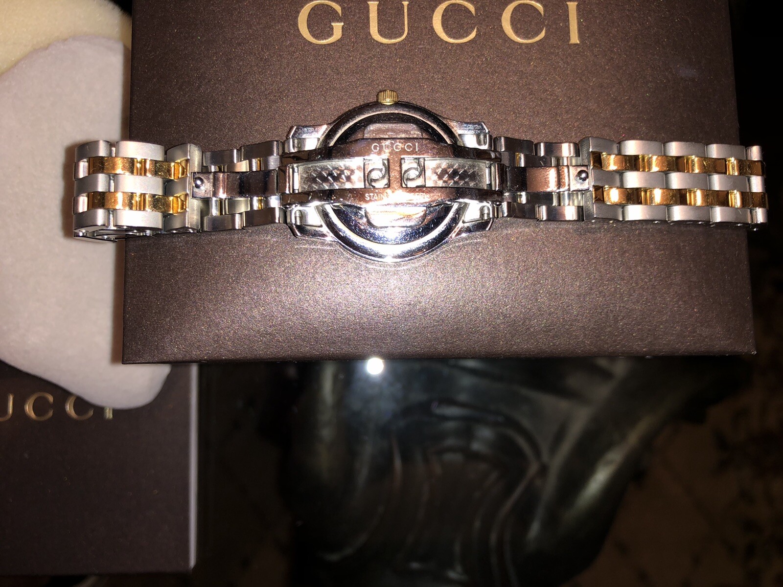-SHIPS DAY OF PURCHASE -Gucci 2 tone Women’s bracelet watch -100% AUTHENTIC GUARANTEE -Barely worn being in excellent shape -Comes with everything original (packaging, tags, etc) -BUY WITH CONFIDENCE