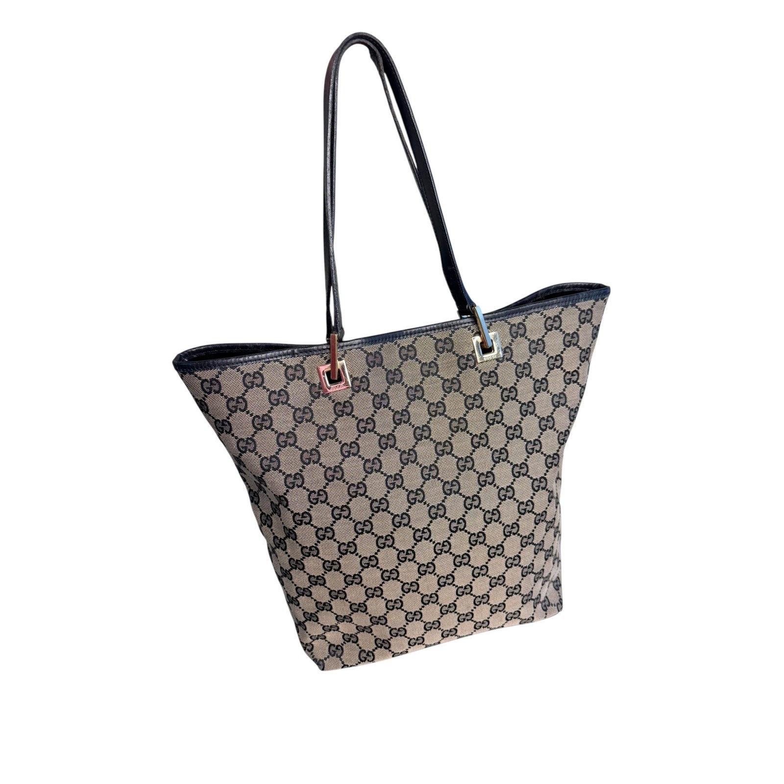 Excellent condition pre-owned vintage GG canvas tote in gray and black. Signs of wear are consistent with a vintage bag. Interior and exterior are very clean. The bottom which is leather does have some rubbing and minor scratches. The hardware also has some scratches consistent with a vintage bag. Bag comes with certificate of authenticity. Open top One inside zip pocket Trim: Leather Lining: Canvas & leather Canvas Made in Italy